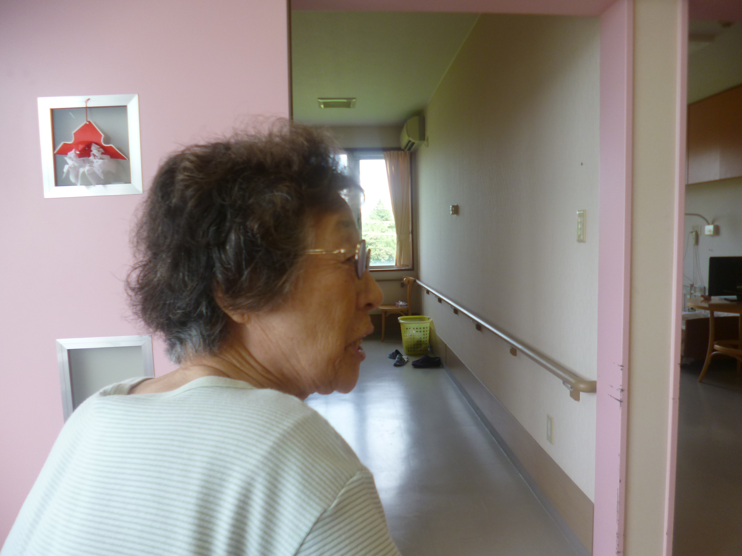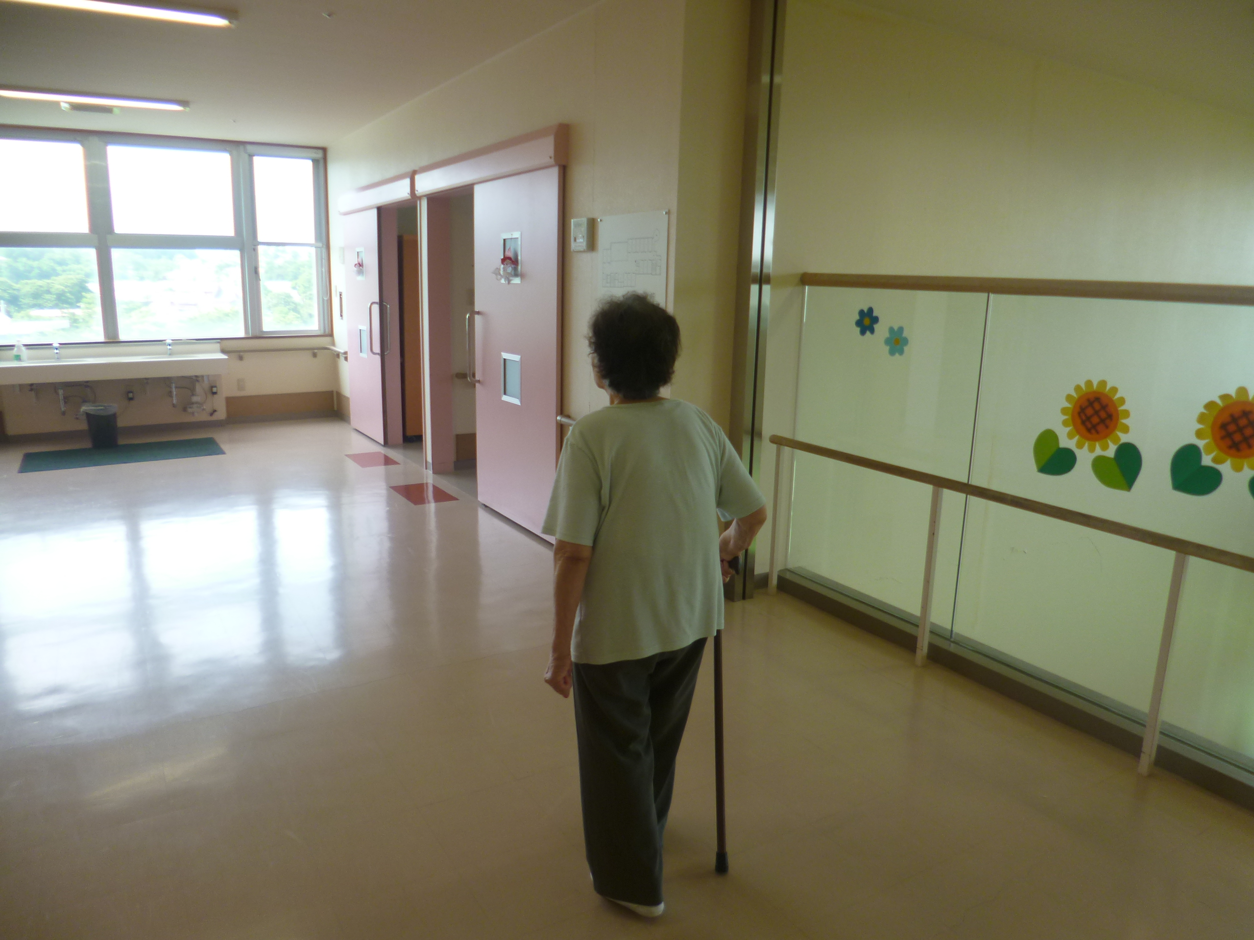 「あるがねば、まねんだ」と朝9時のホールを散歩しています。