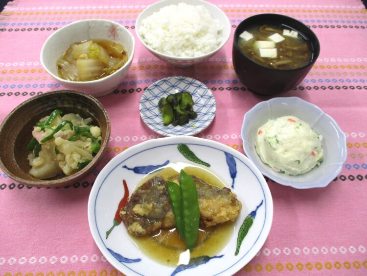 ポテトサラダ、白菜の煮びたし、青かっぱ漬