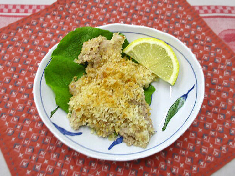 ご飯、ほうれん草と板麩のみそ汁、豚肉のパン粉焼き、すき昆布の炒め煮、ブロッコリーとコーンのサラダ、べったら漬、ラフランスゼリー