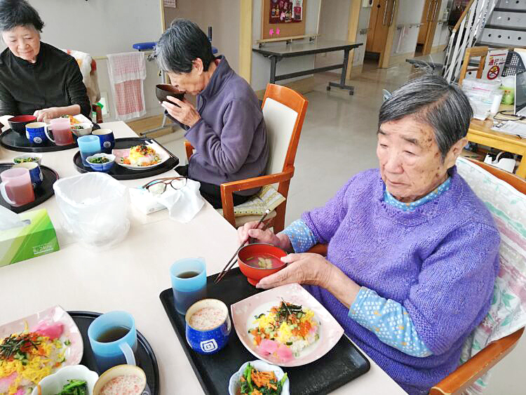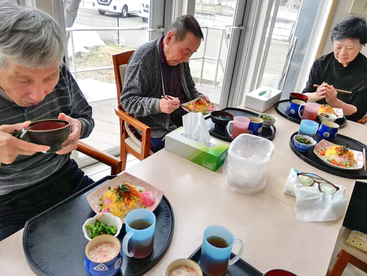昼食はちらし寿司、茶わん蒸し🎶をいただきました