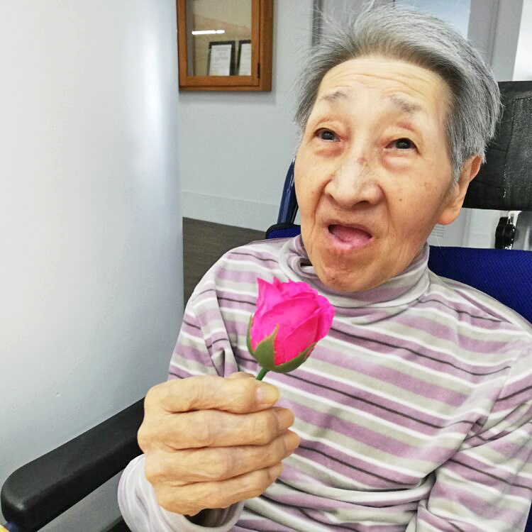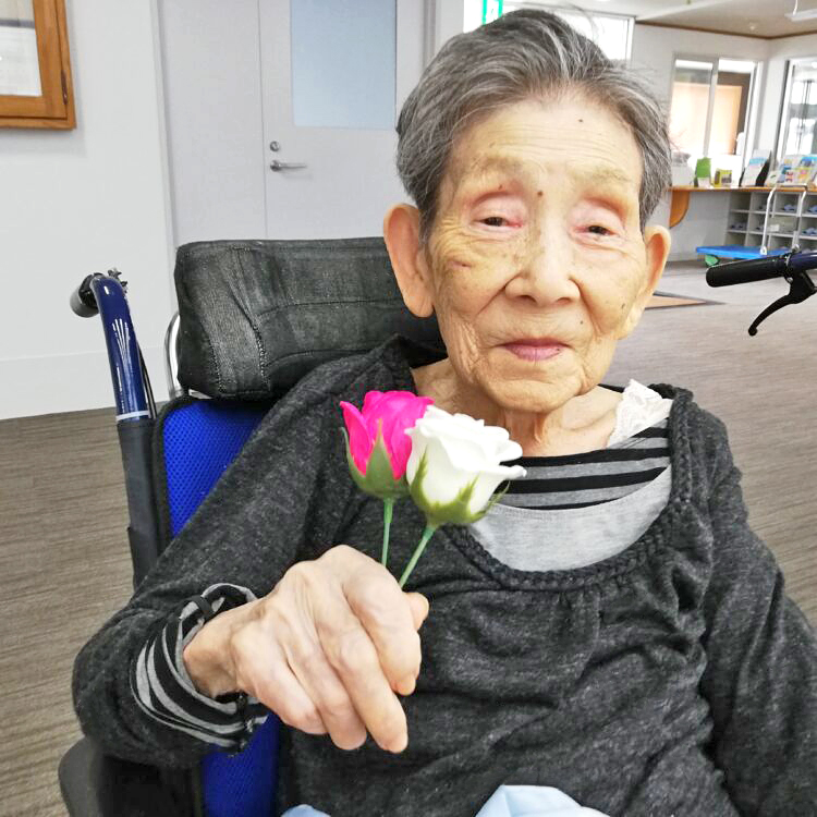 T様のお花をお渡しすると「私今日誕生日だっけ?」と冗談を言って職員の笑いを誘っておりました(o^―^o)ニコ