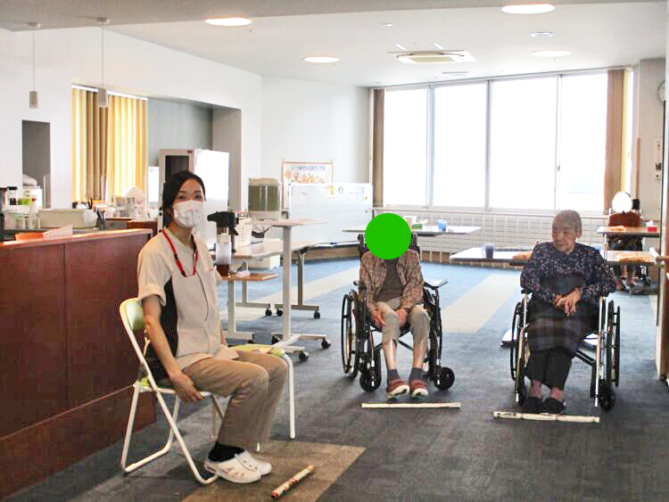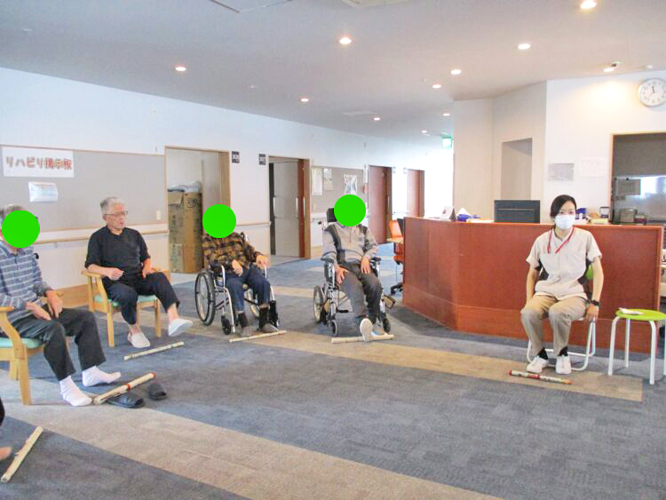 集団体操では作業療法士と一緒にお客様が集団で体操やレクリエーションを行っております。