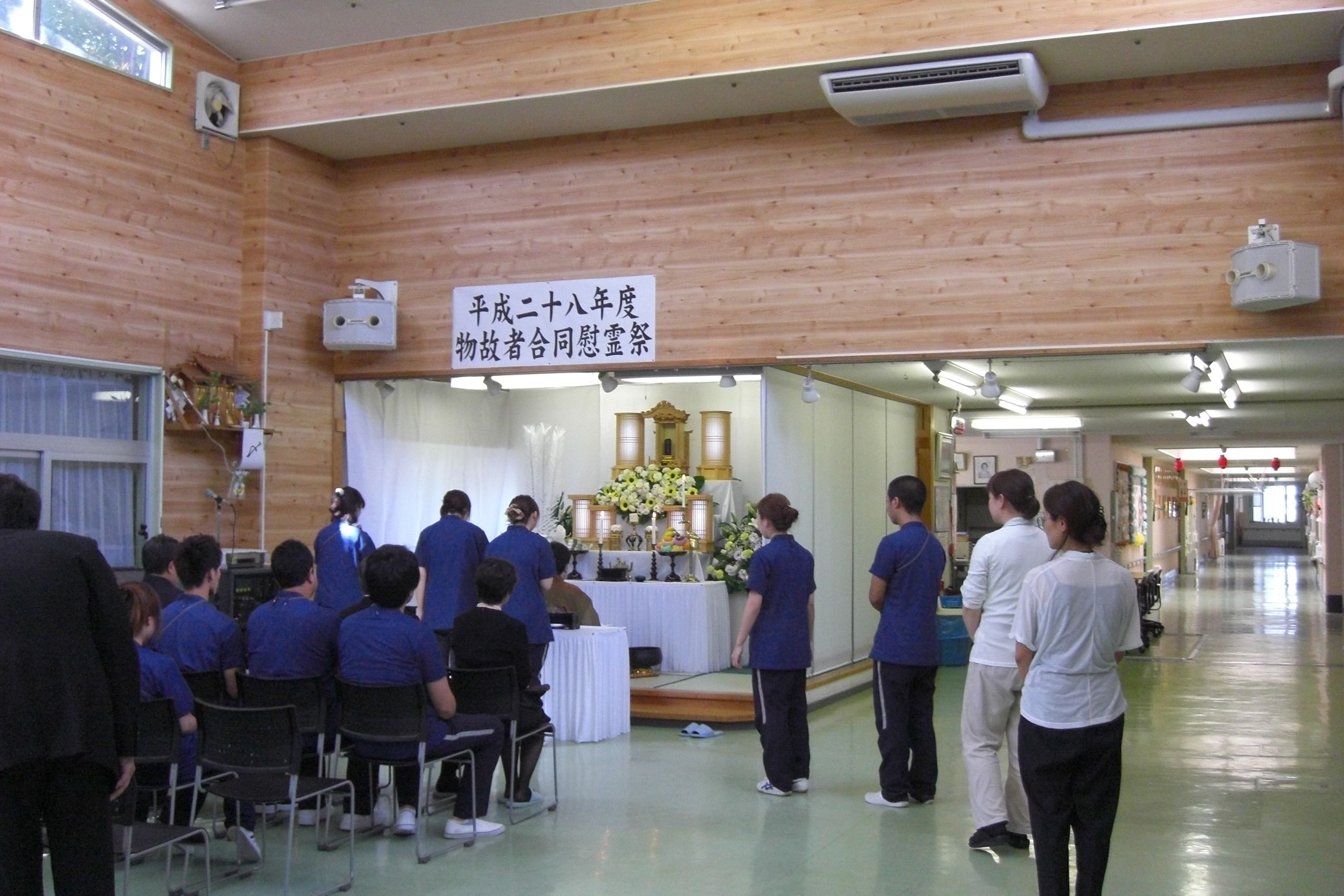 生前を偲んでお客様、職員、亡くなられた方のご家族様も御来園くださり、心を無にし祈りを捧げました。