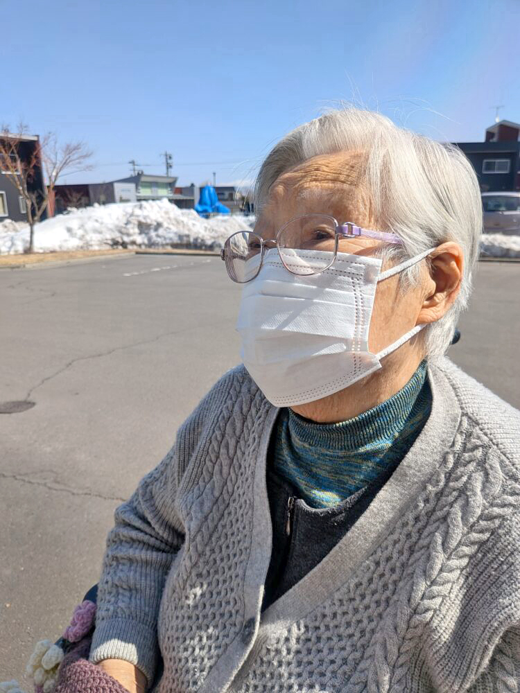 職員が車椅子を押して外へ出ると、心地よい風に「今日だば晴れていいな~」と笑顔が見られました。