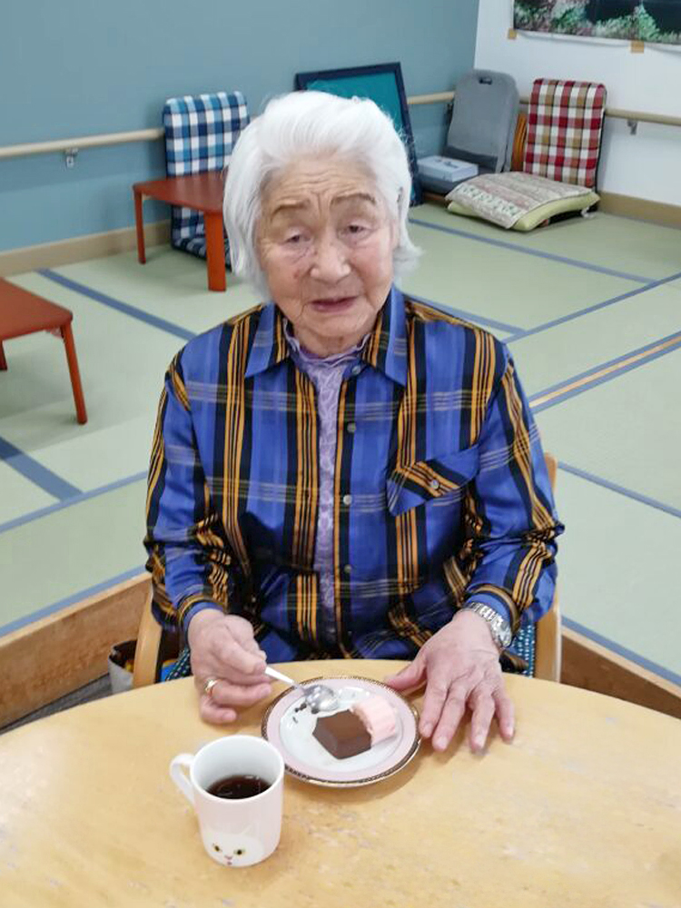 あいにくの天気で急遽室内でおやつを食べながら皆さんで楽しく歌いました。