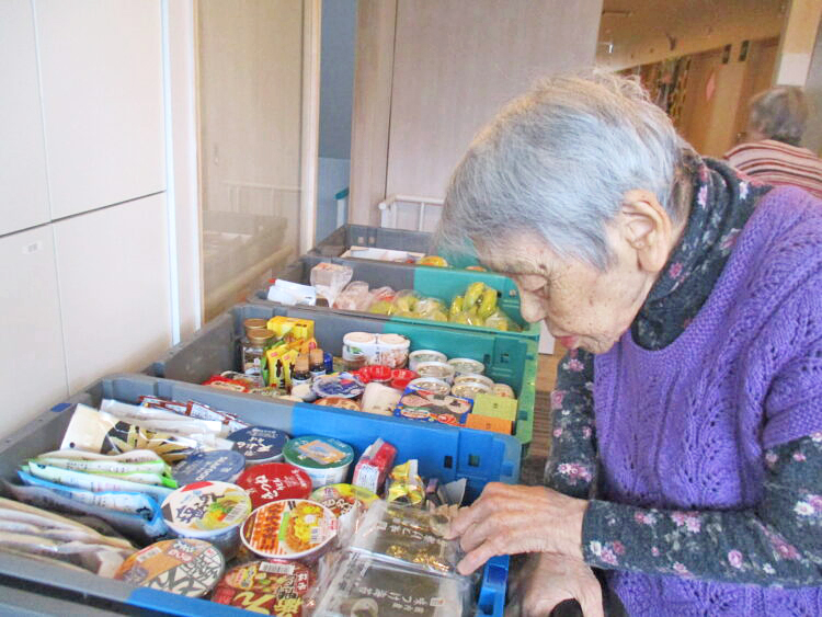 皆様かごを持ち「どれにしようかな」「これ美味しそうだな」などとお話ししながらお菓子や果物を選ばれお買い物を楽しまれておりました😊早速購入したお菓子を頂き「美味しい」「これまた買おうかな」と話されておりました😊