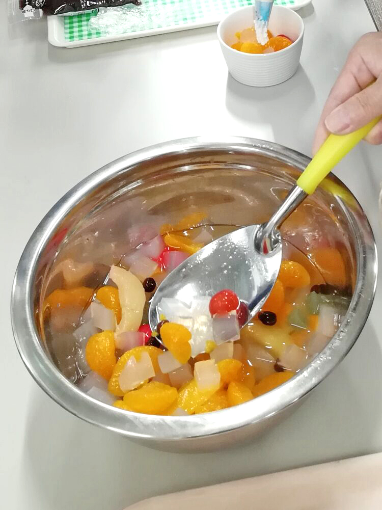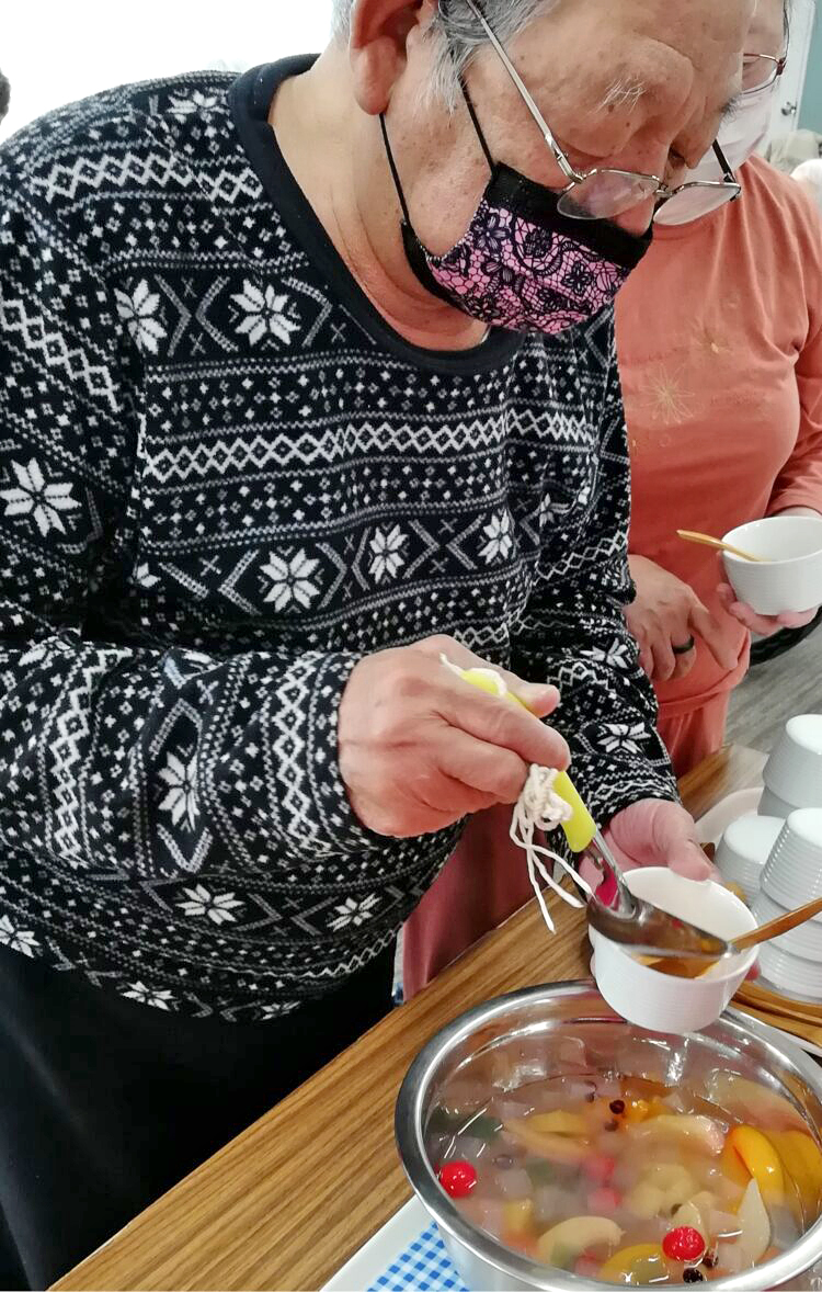 今日の午後はおやつ喫茶であんみつを自分で盛り付けて頂き
