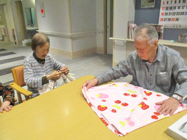 S様は、畳み方が分からなくなってしまったので、T様が畳んでいる様子をみて畳み方を覚えていました。