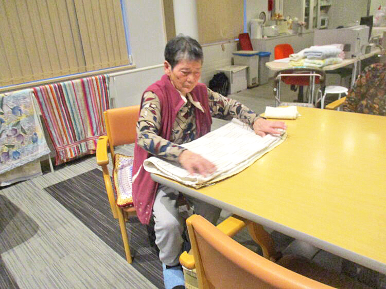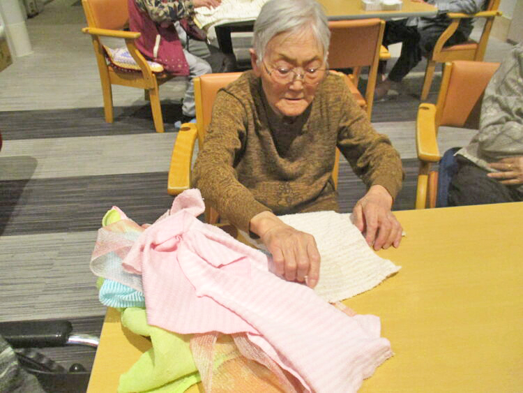 その後、S様が再度タオル畳みを行い職員へ「これで大丈夫だが」と話されていました。「大丈夫ですよ」と伝えると笑顔が見られていました。