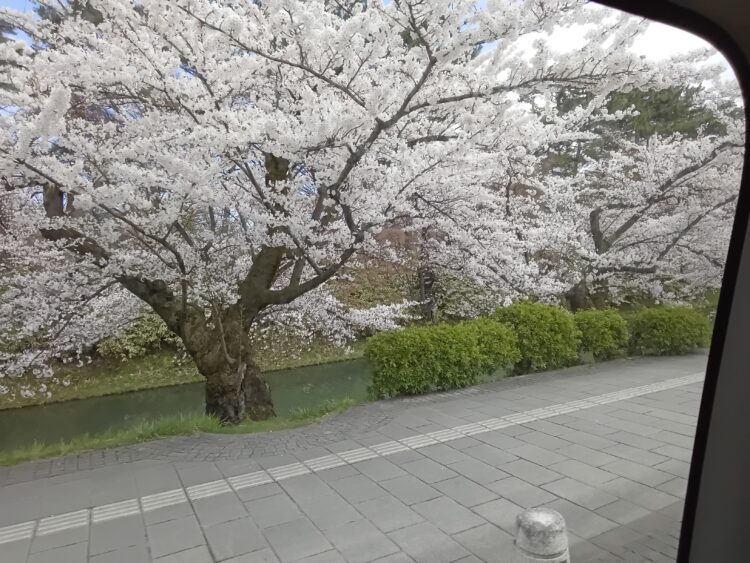 車内から見える外堀の桜をうっとりと眺めていらっしゃいました。