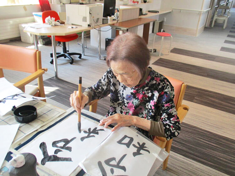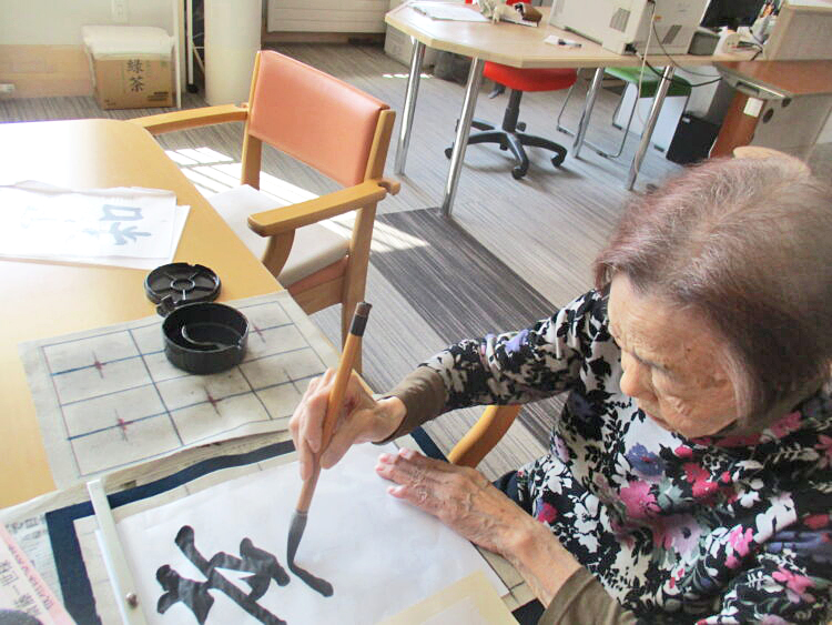 本日は2階の皆様と一緒に書道を行いました!職員が用意したお手本を確認しながら「難しいな」「出来た!」等と談笑されながら丁寧にそして綺麗に行いました!