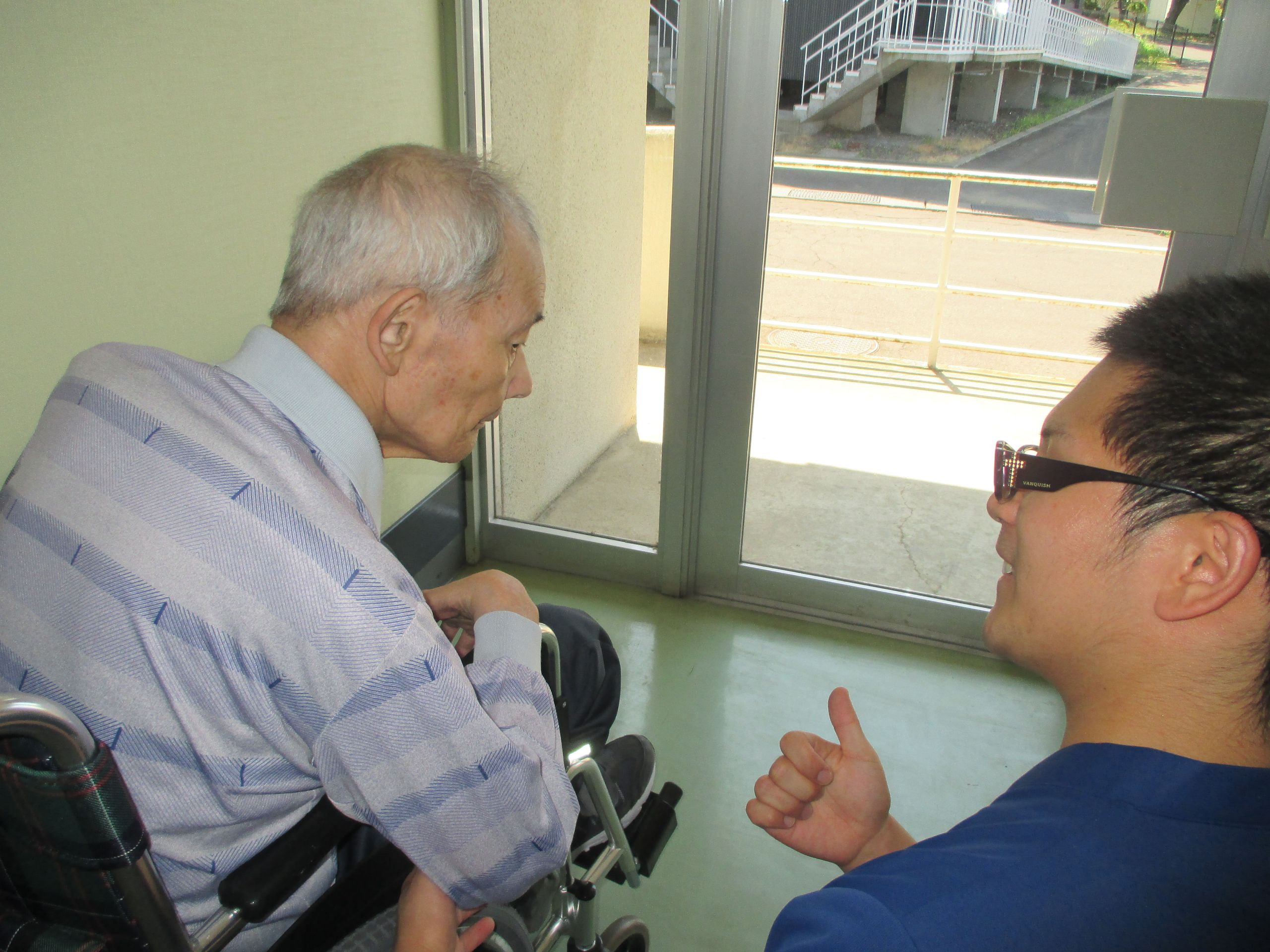 K様「外、暑そうだな・・」と話され、本日31度まで気温上がる旨伝えると静かな表情で「んだのが、、」と遠い目をされて外を眺めておりました。