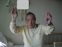 座位にて上下肢可動域訓練中、カメラを向けたところ・・・