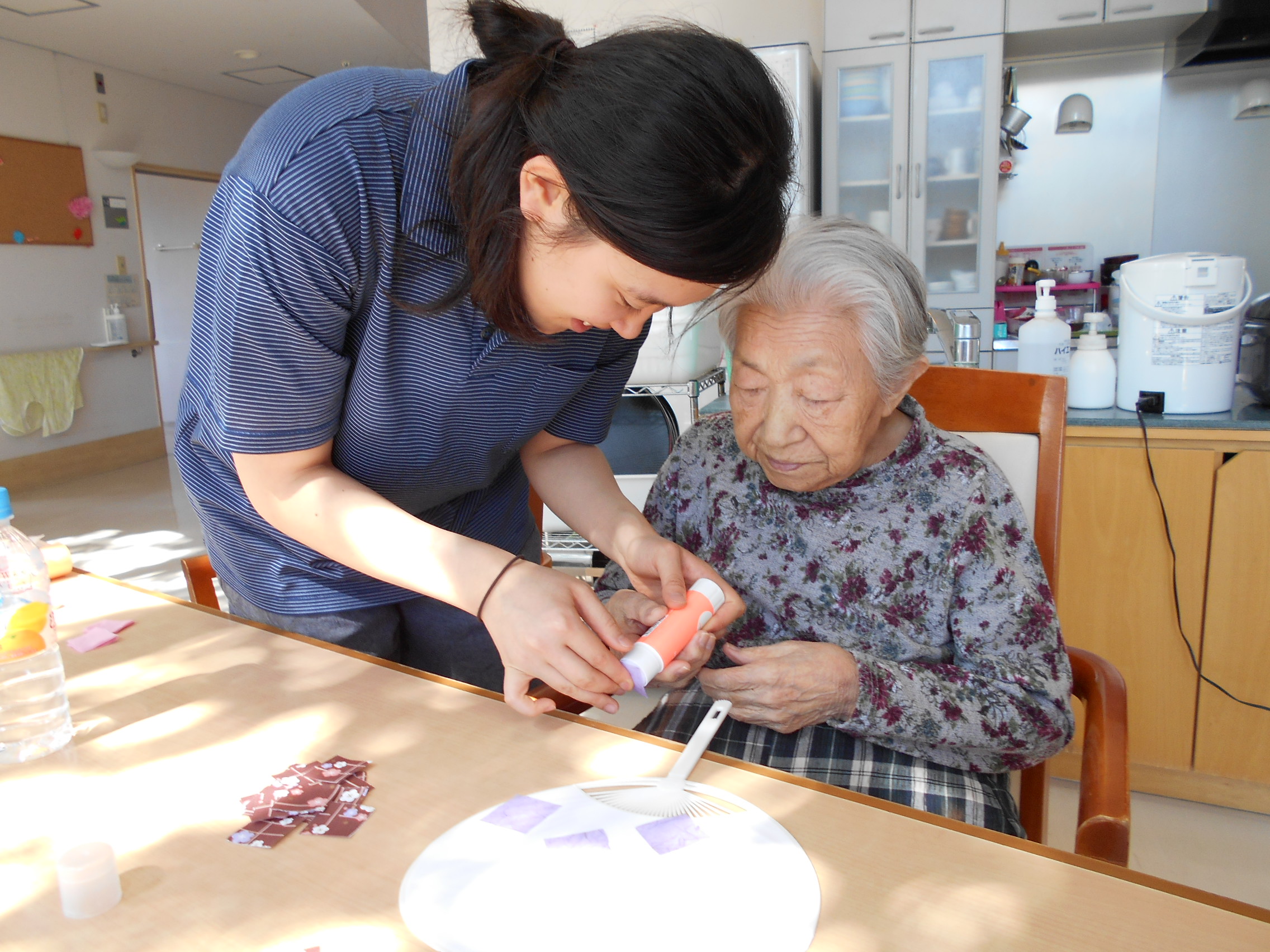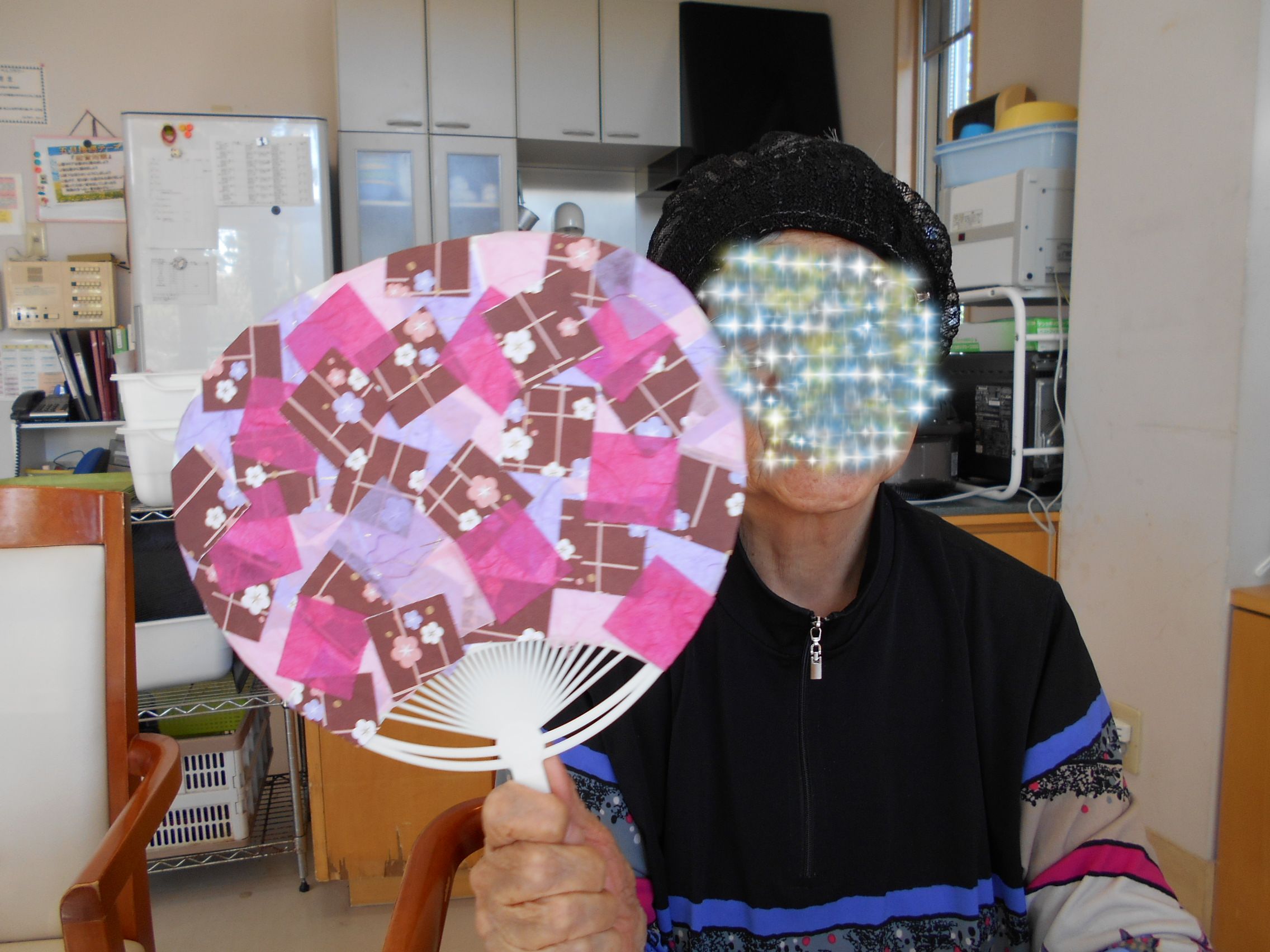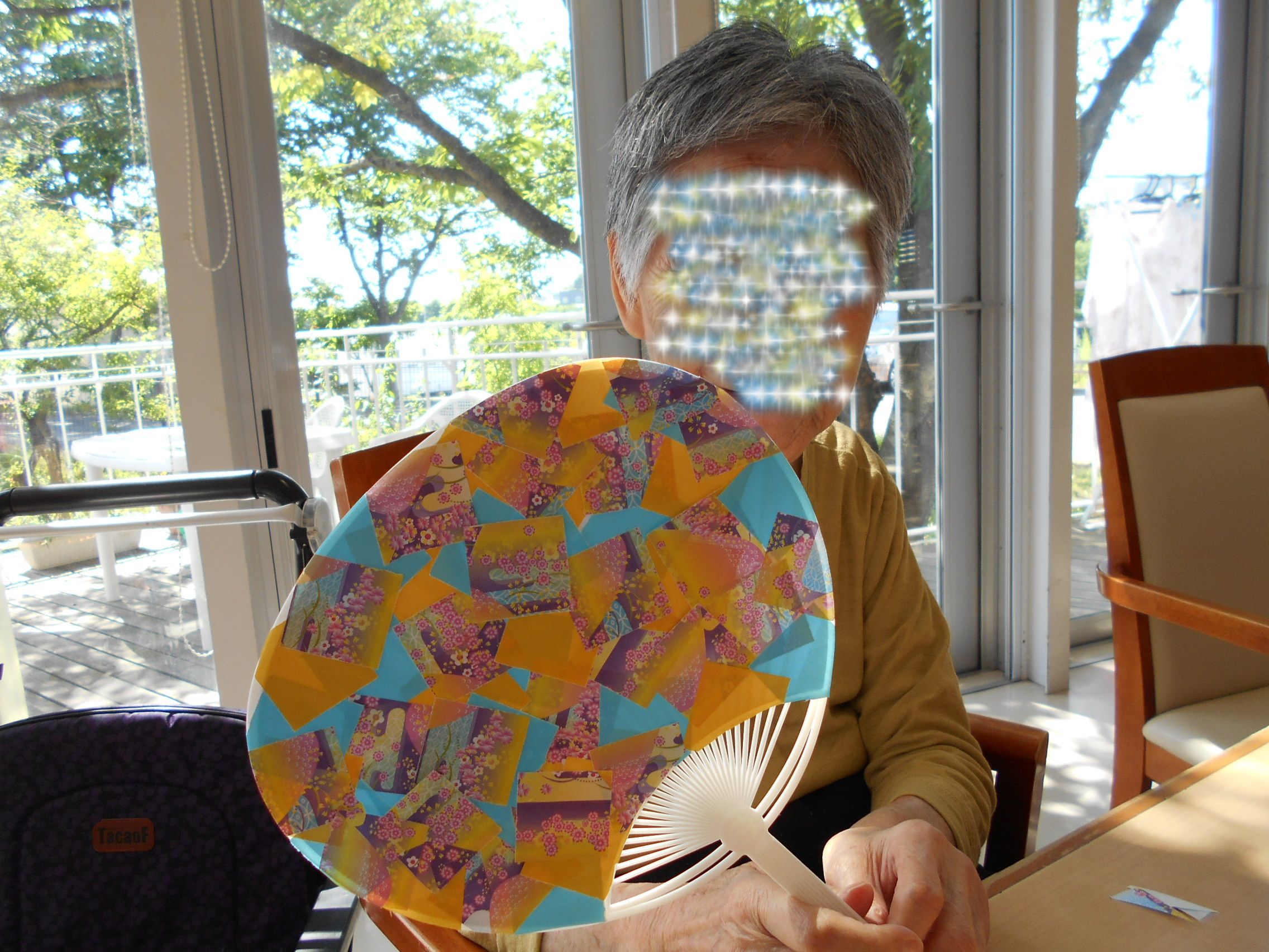 お客様と折り紙などを貼り付けて綺麗に飾ってみました。