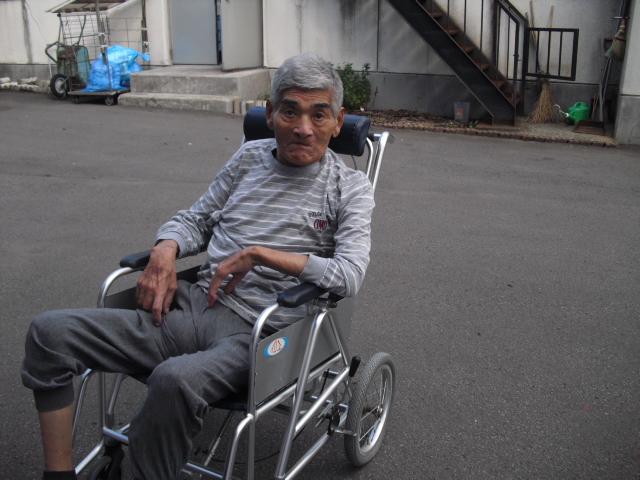 こんにちは!今日は車椅子で外まで散歩がてらの座位訓練を行いました。