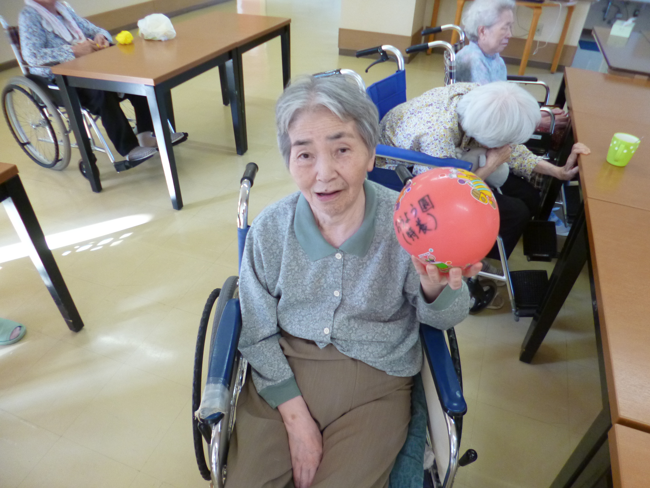 みなさん、こんにちわ!今日は新館ショートステイのお客様たちと一緒に、ボールリレーを行いました!