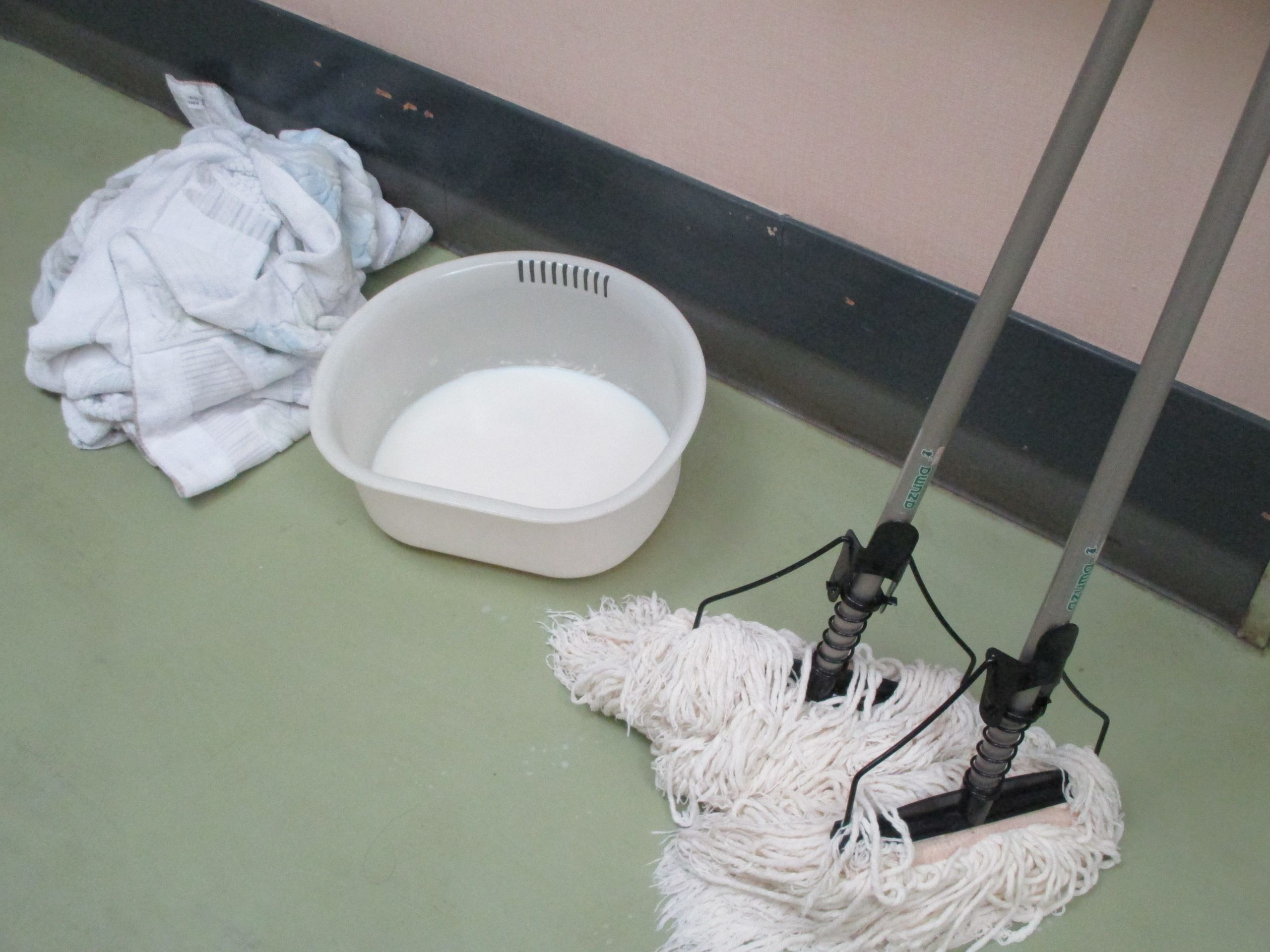 今日から三日間、おうよう園全体の床にワックスがけを行っていきます!