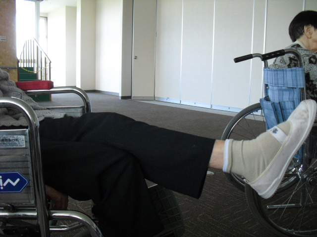 皆さん、こんにちわ。今日もy様は、下肢の挙上運動に励んでいます。顔はお見せで来ませんが……….このぐらいは平気だよといっていました。またがんばろうね。