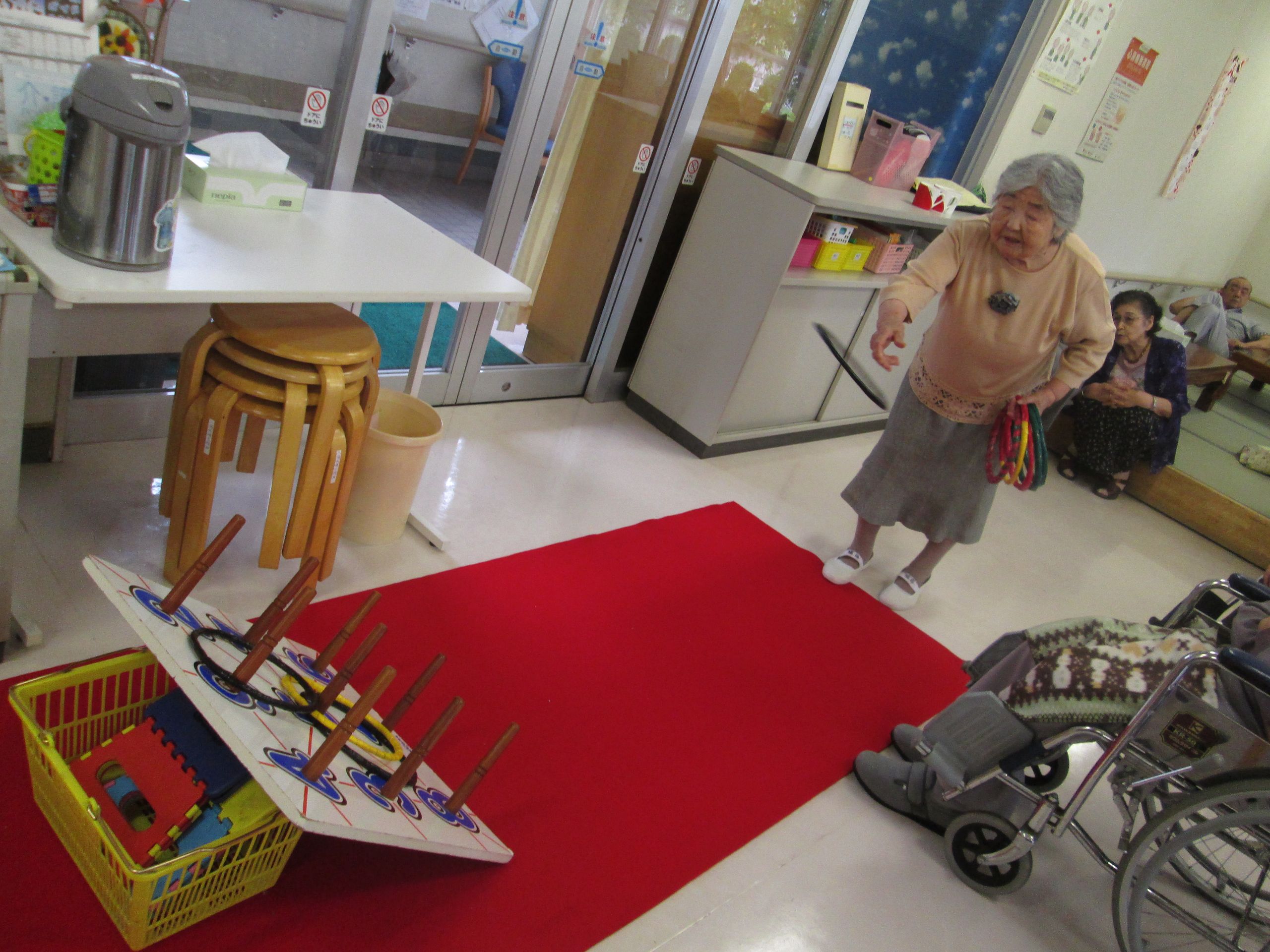 いつものレクは、練習ありの本番となりますが、輪投げは誰もがやったことがある遊び