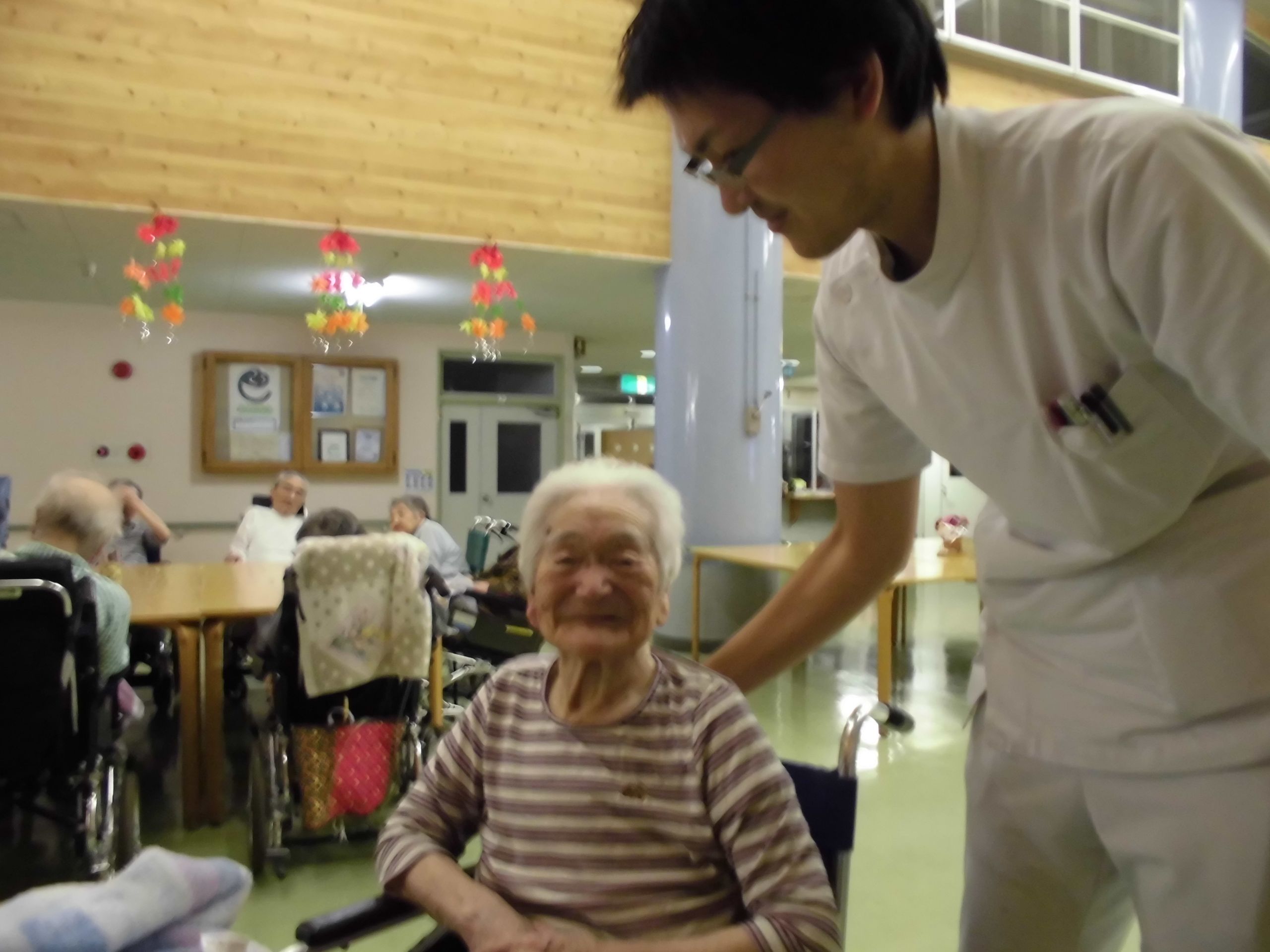 こんにちは!今日はN様の座位訓練を行いました。いつも座ってご飯を食べる方なので座る力を維持する必要があります。