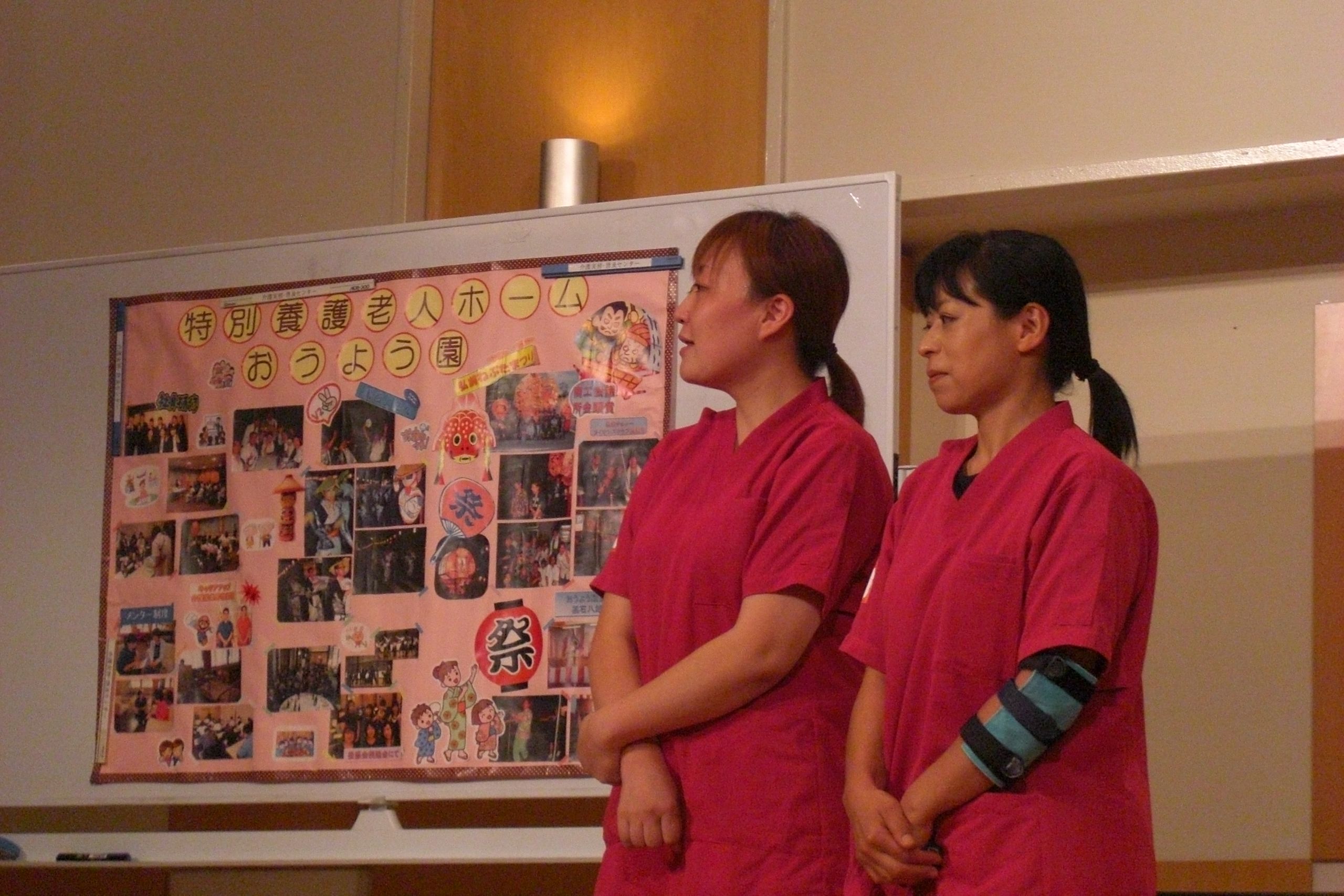 本番出演まで2分前の出来事でした。今までマニアル通りに練習してきたことを頭から消し(技術の基本はそのままです)ぶっつけ本番でS介護士の会話に合わせてわざとおもしろおかしく介護演技にあたりました。