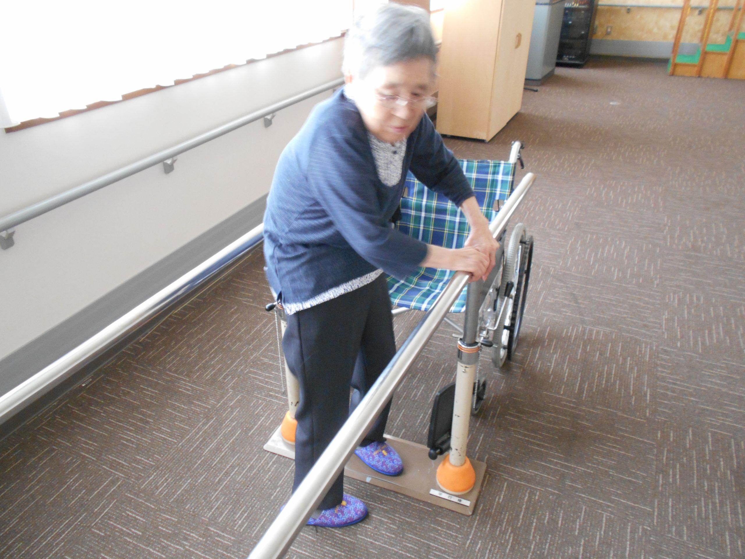 そこでS様と一緒にショートステイ1階にある歩行棒で掴まり立ちの歩行訓練を行いました。