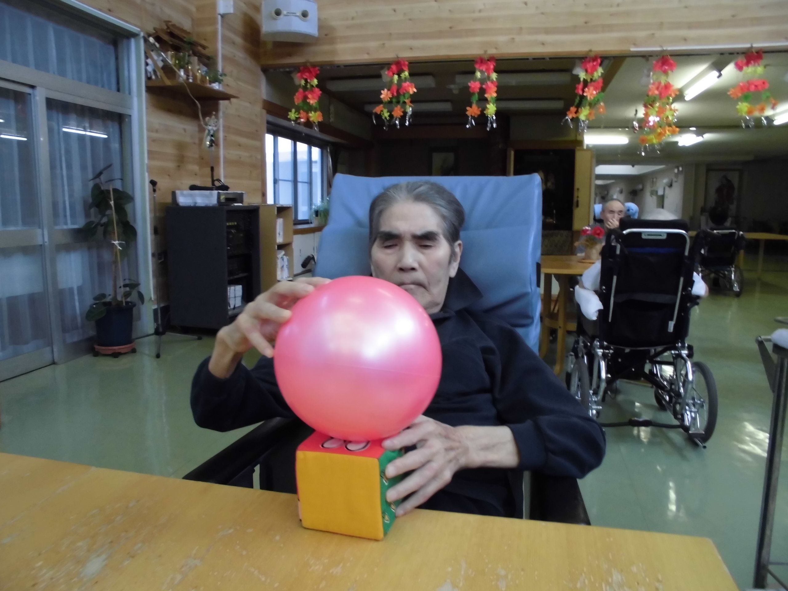 難しいですね。違う形のものを積みます。まして、乗せるのが球体です。