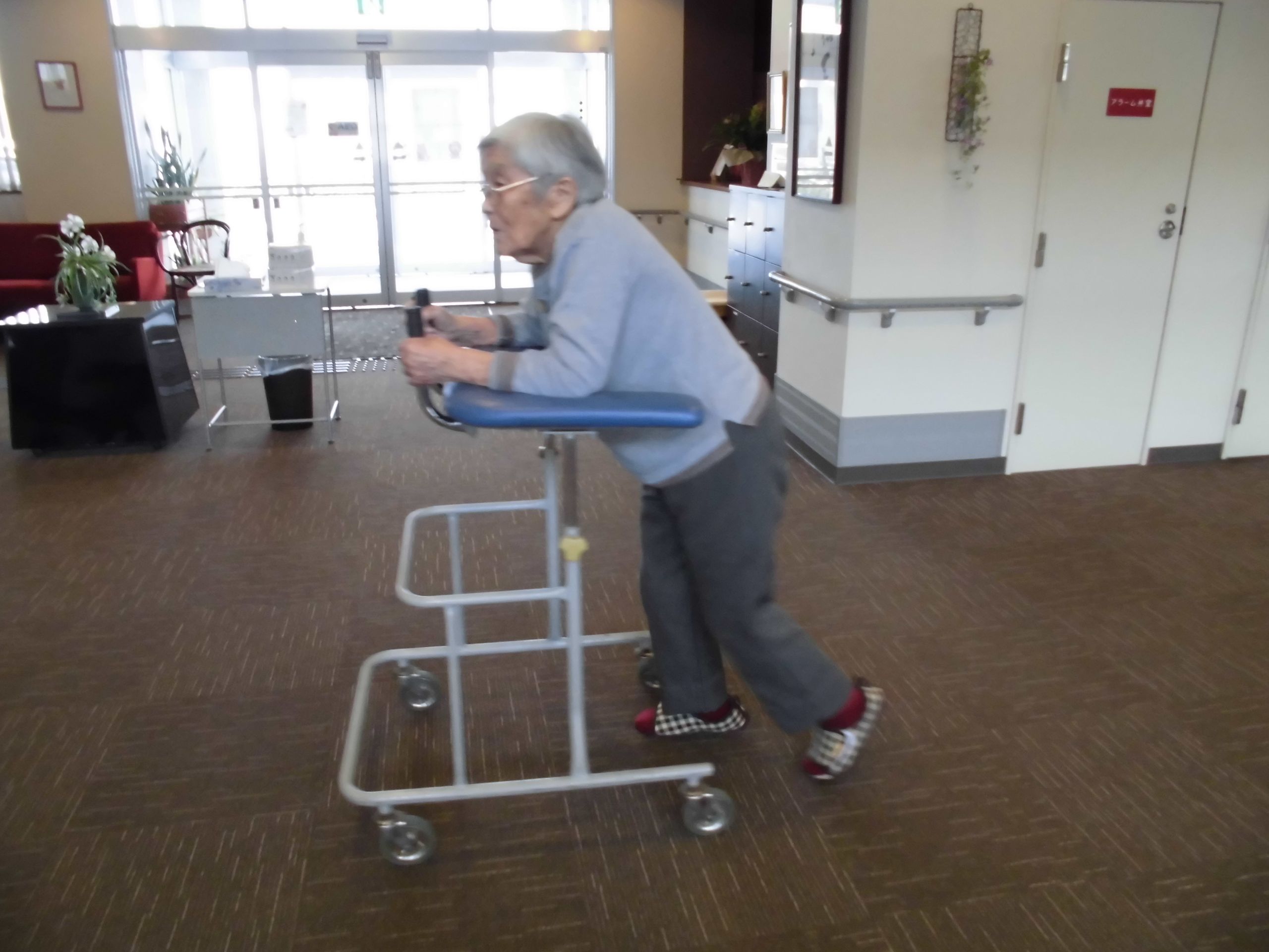 ほー、きれいだね、寒くなければいいのに。と一言話していたT様。そして、歩行訓練を