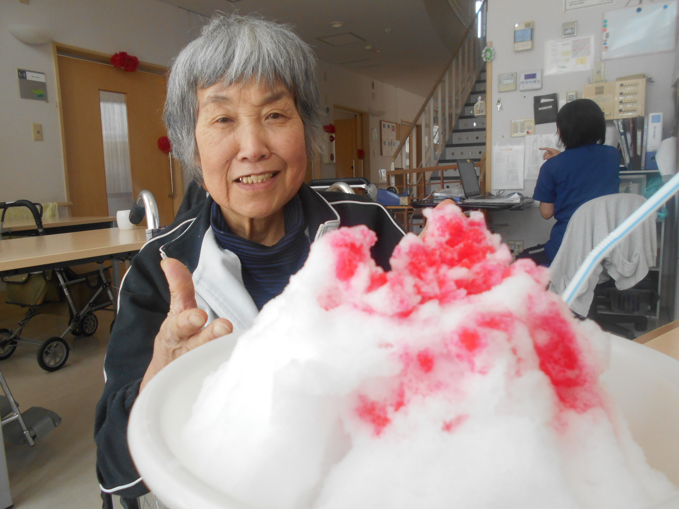ベルフラワーの皆さんの為にテラスから雪を持ってきて、雪に触り、冬を感じて頂きました☆
