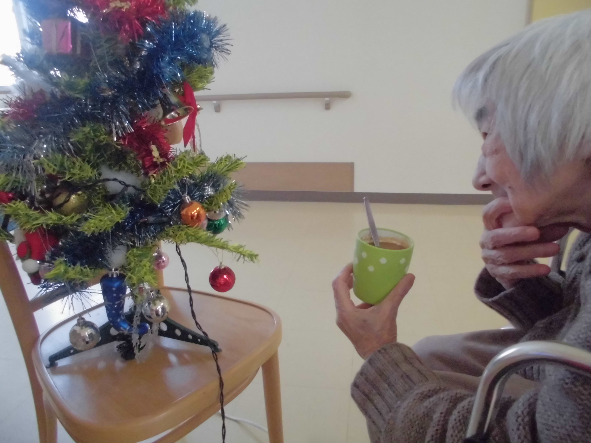今日のお茶会のときにツリーを眺めながら優雅にお茶を楽しんでいるM様がいらっしゃいました。