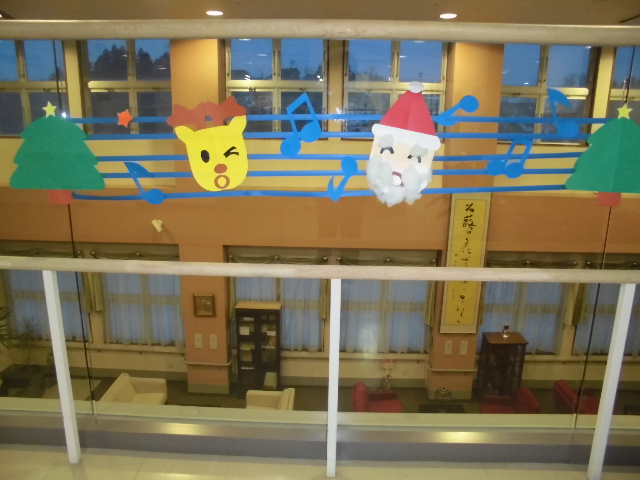 近くで見るとこうなっております。こうして季節の飾りをすることによってお客様から反応してもらえると嬉しいです。クリスマスが終わったらあっという間に年明けですが、お客様も職員も体調に気をつけて健康に年越しが出来るよう努めます。