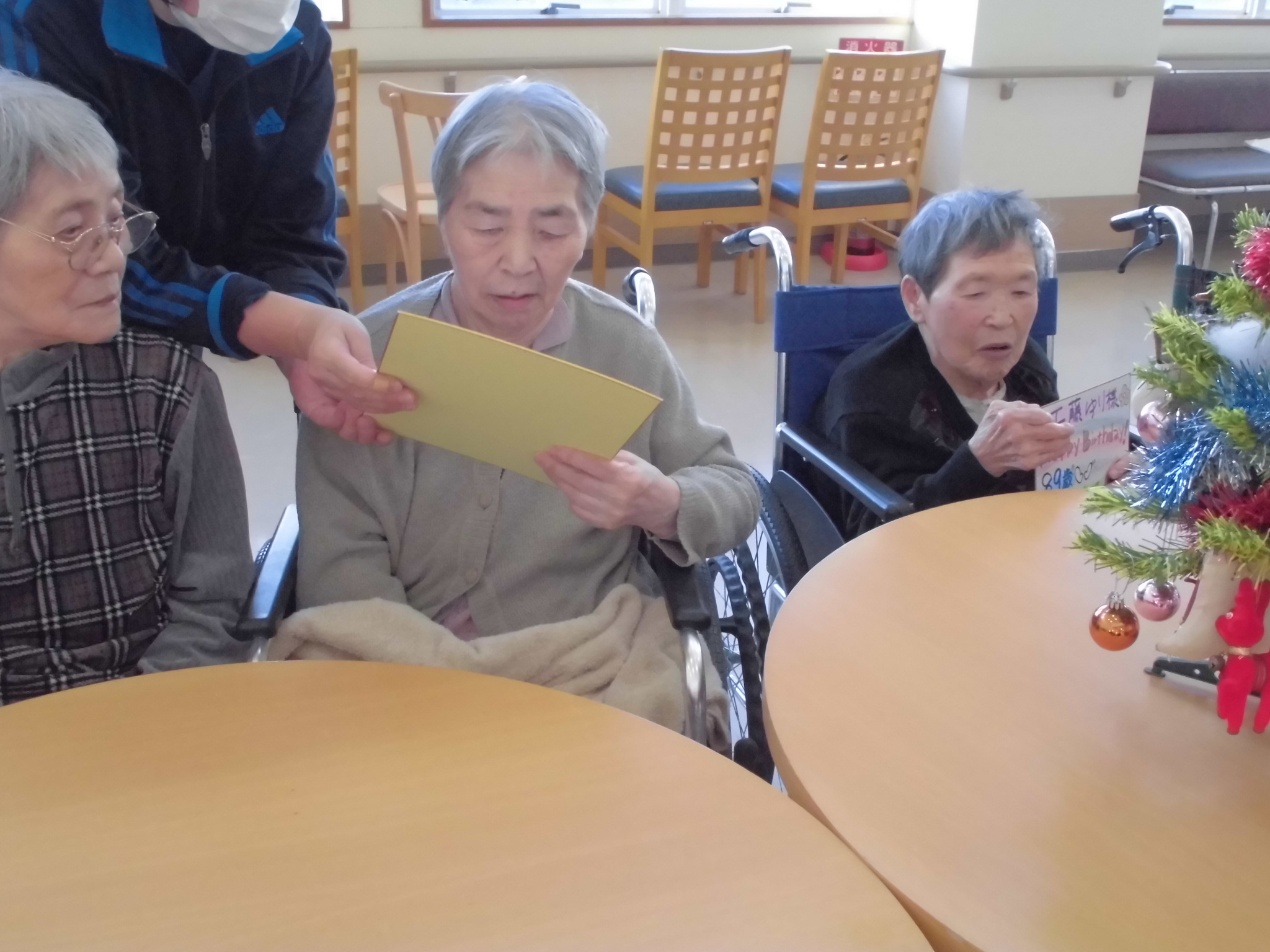 誕生日だった方には職員から色紙をプレゼントさせて