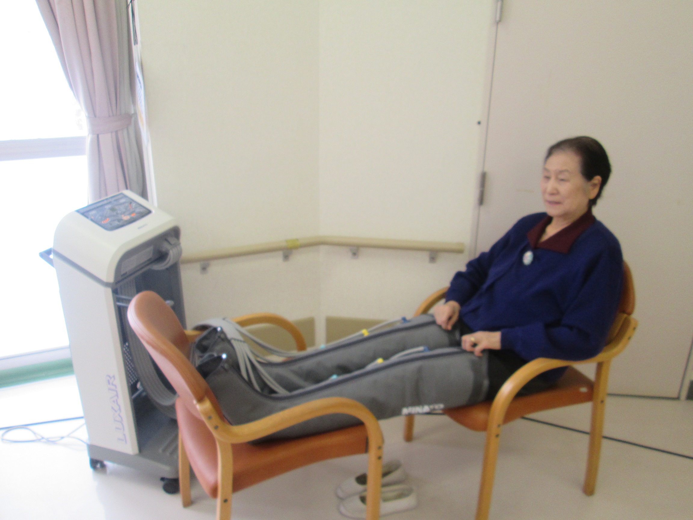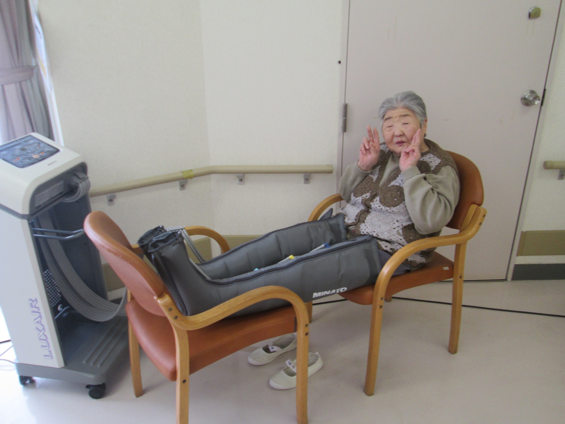 おうよう園デイで大人気の下肢マッサージ機【LUXAIR】ですが、