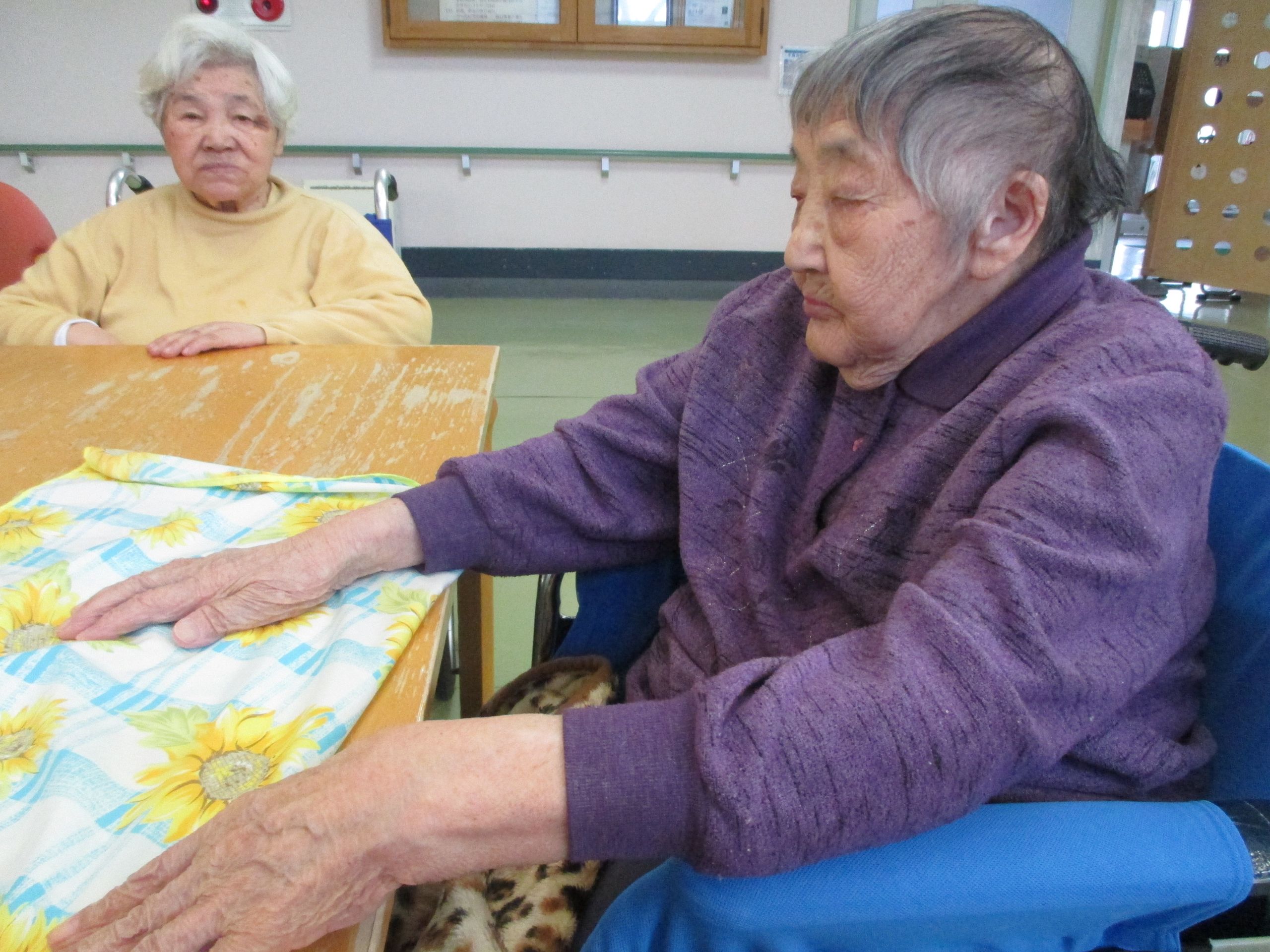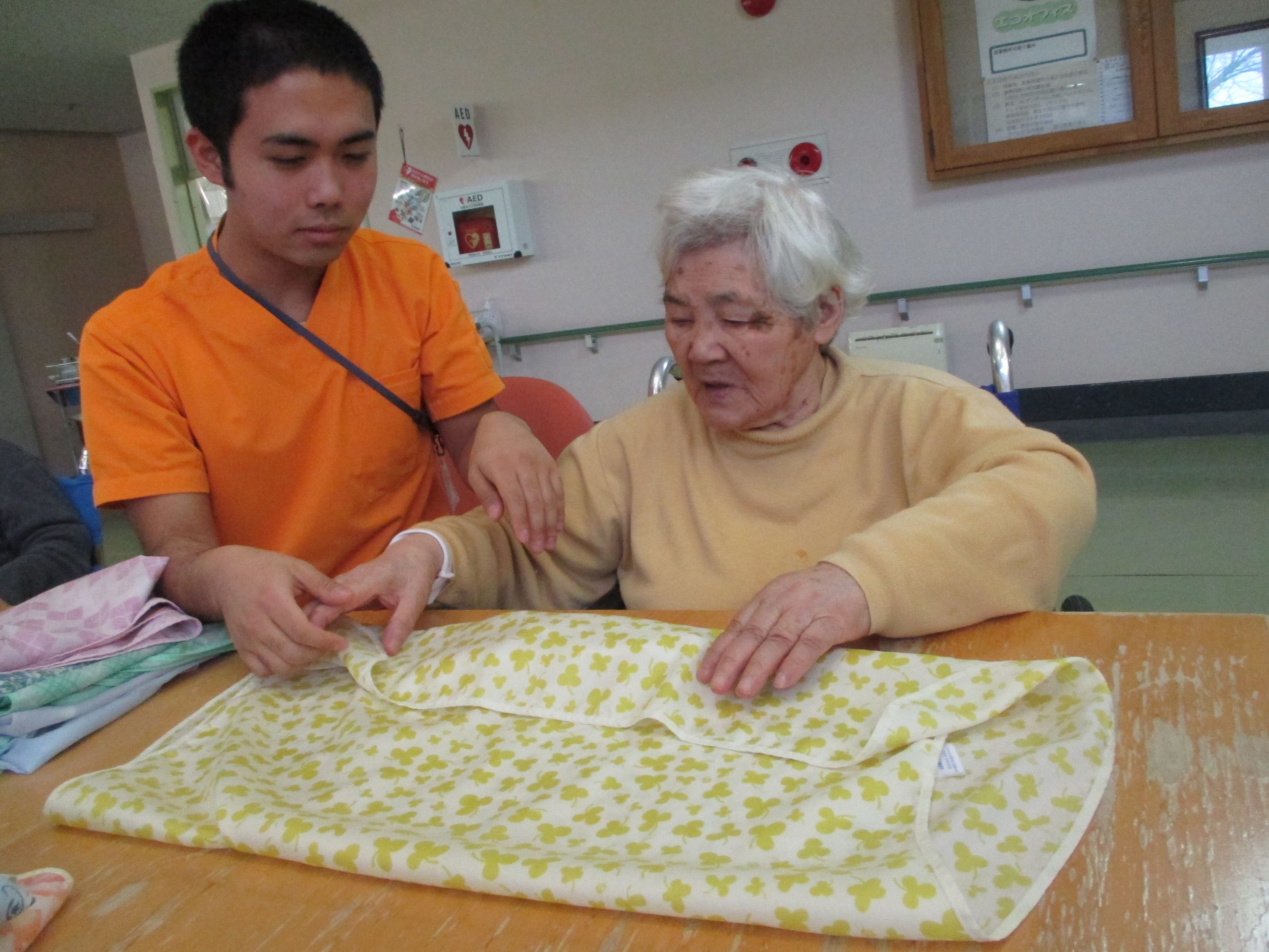 T様はいつも職員が洗濯物をたたんでいると、声をかけて一緒に手伝いをしてくれます。いつもきれいにたたんで頂き、ありがとうございます!