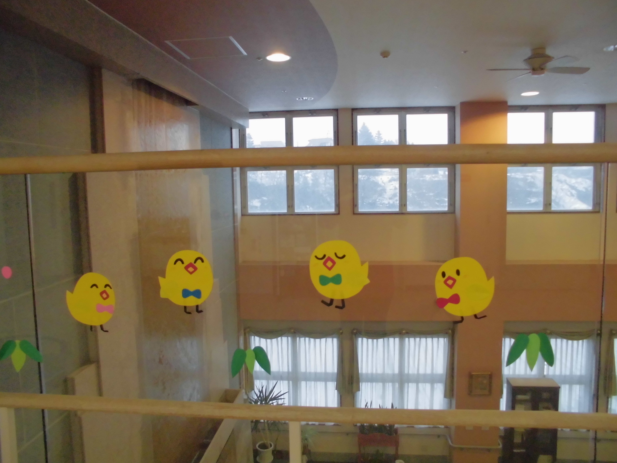 今年は酉年ということで、お客様が過ごすホールに可愛らしいとりの絵が