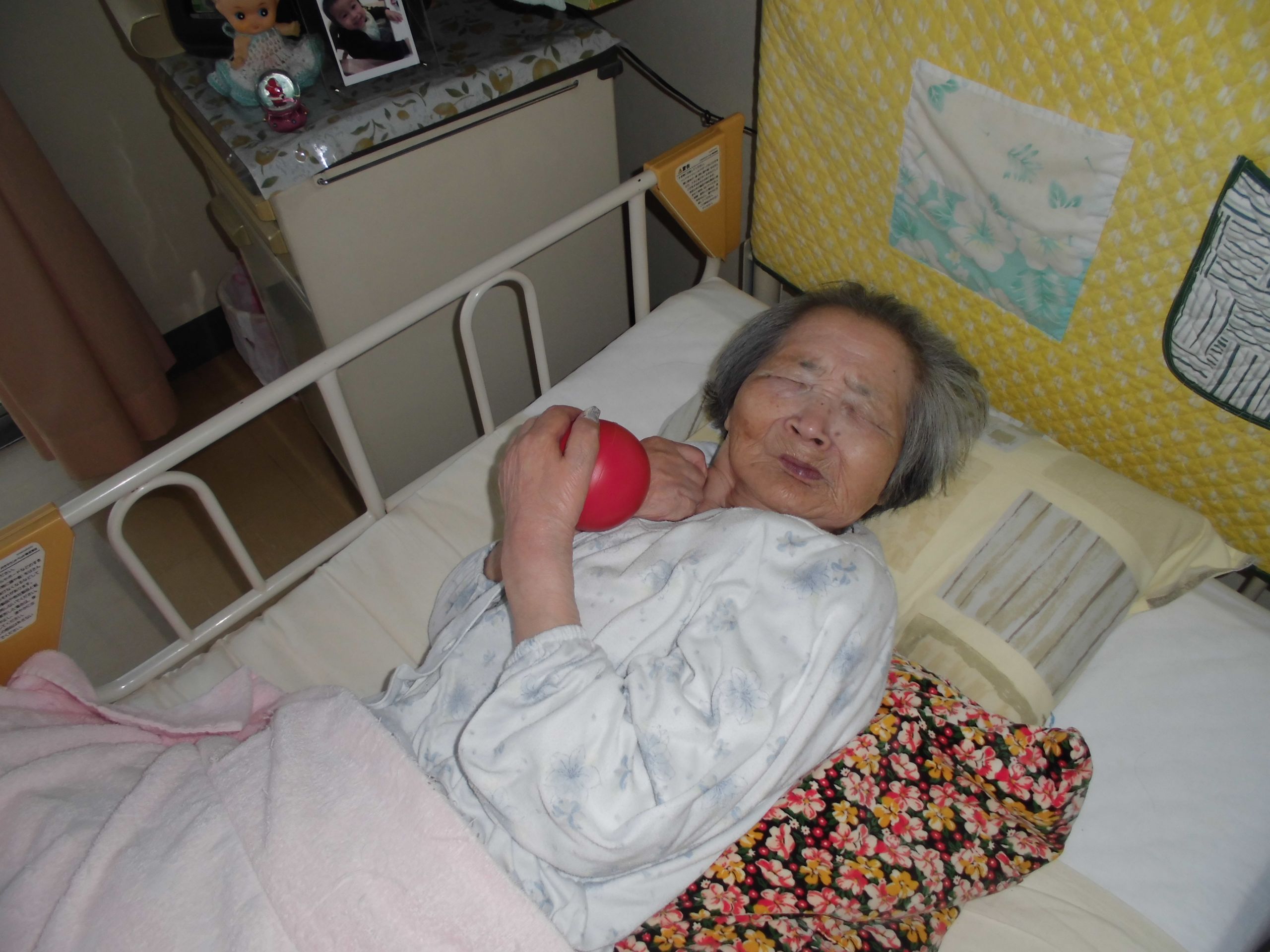 手指の運動も兼ね掌サイズのボールも持って頂き上下肢の運動で併用し行いましたが疲労感もなく行う事が出来ました♪