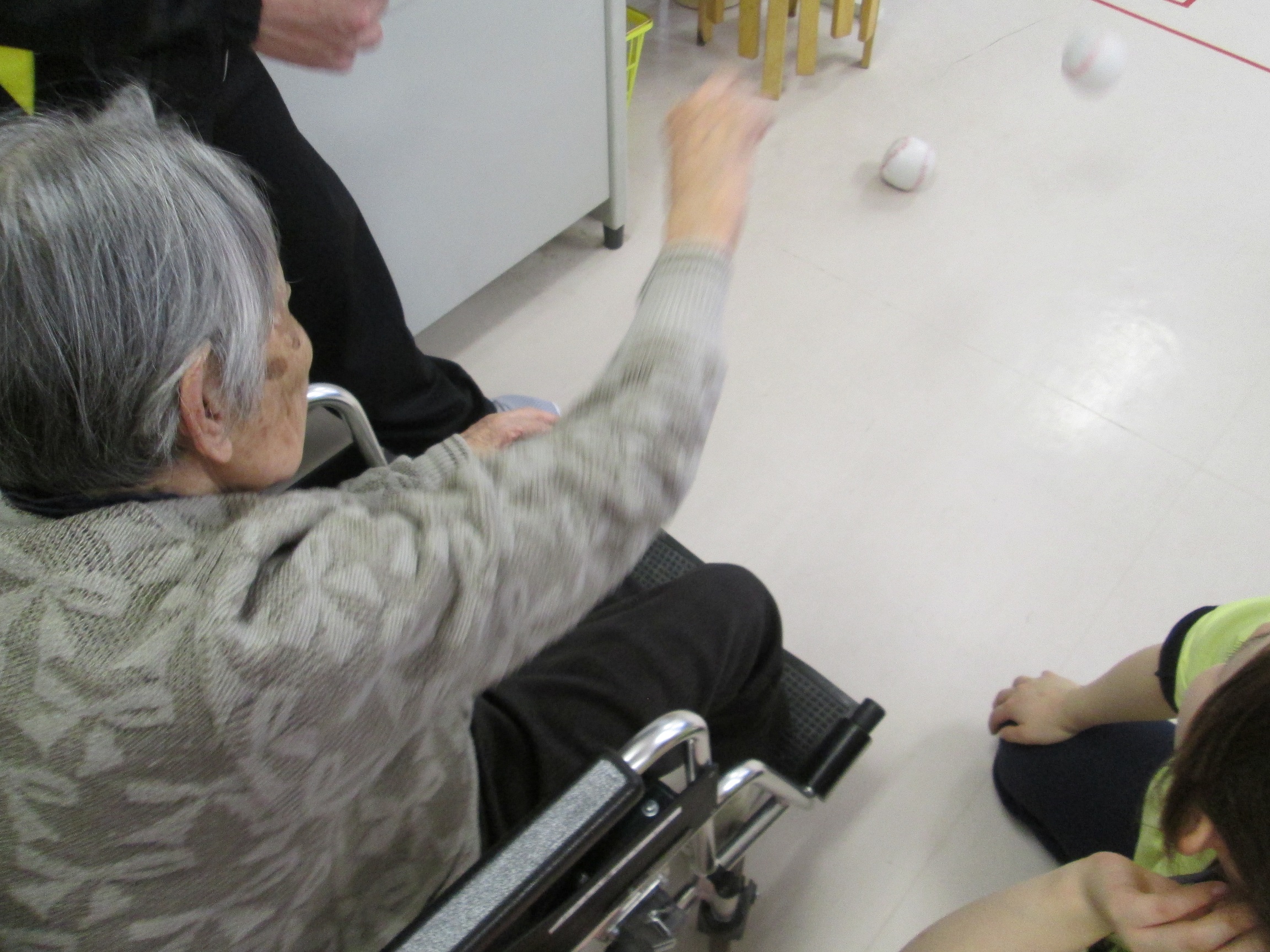 今日のゲームは、ボールでカーリング♪です。点数を採るのに皆さん真剣!