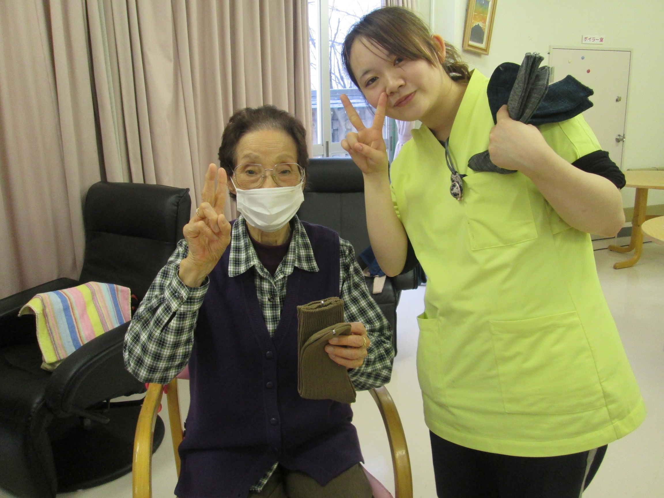 皆さん喜んで点数を採ってました(#^^#)♪なかなかこれが難しいのです。二回目挑戦のお客様には、敢闘賞&努力賞として・・・ほっかり靴下のプレゼント♪これで今年の冬を乗り切って下さいね~♪
