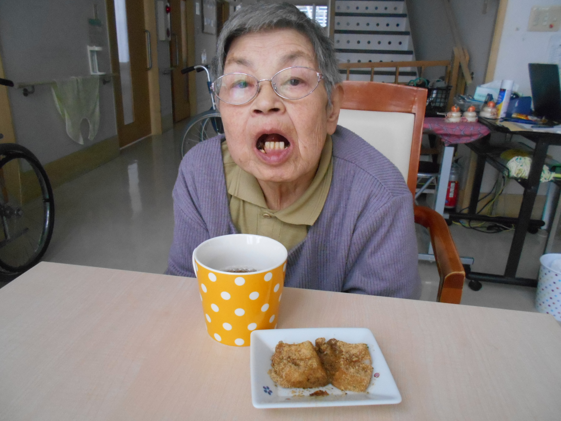 温かいお茶と一緒にゆっくりと、時間をかけて召し上がっていただきました。