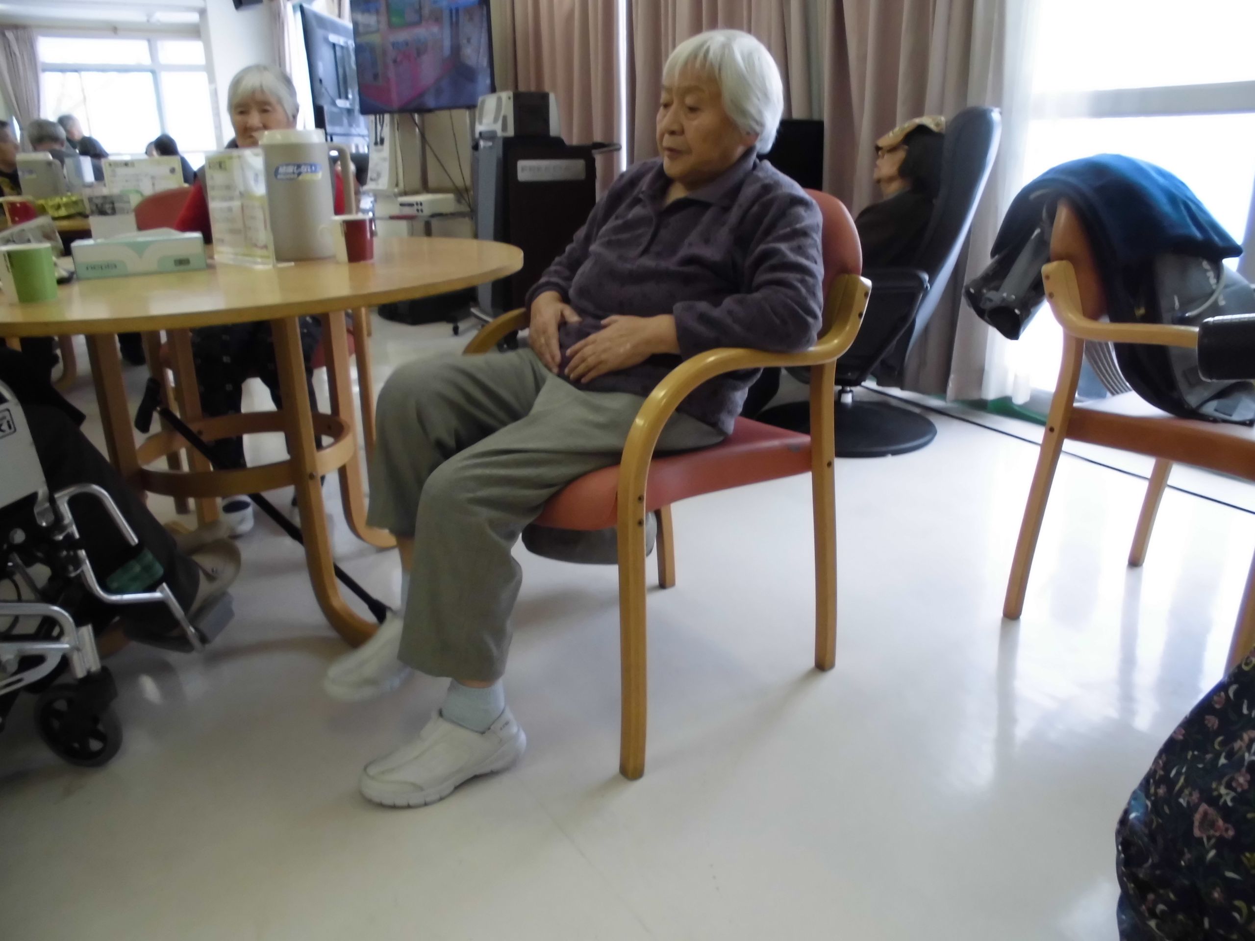 一生懸命、足踏み運動をしています。やっぱり、運動しないとね…..と話され、真剣に