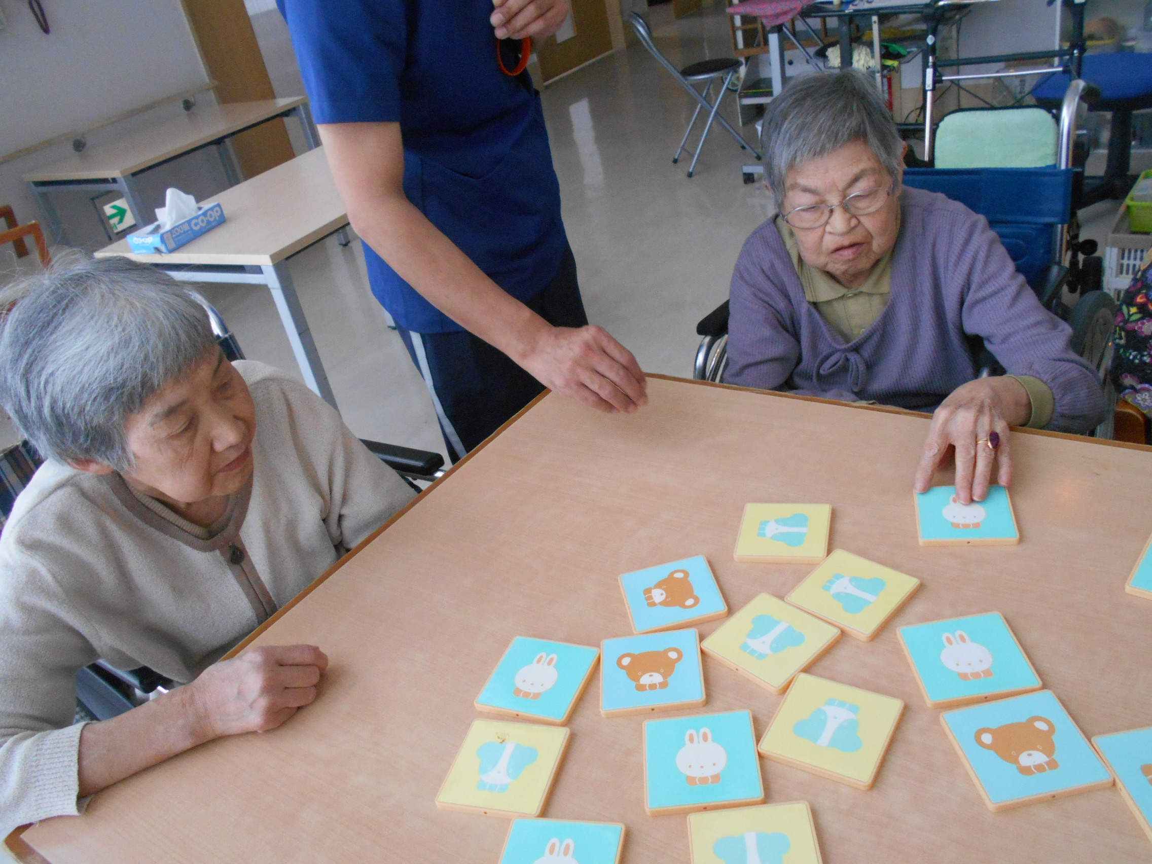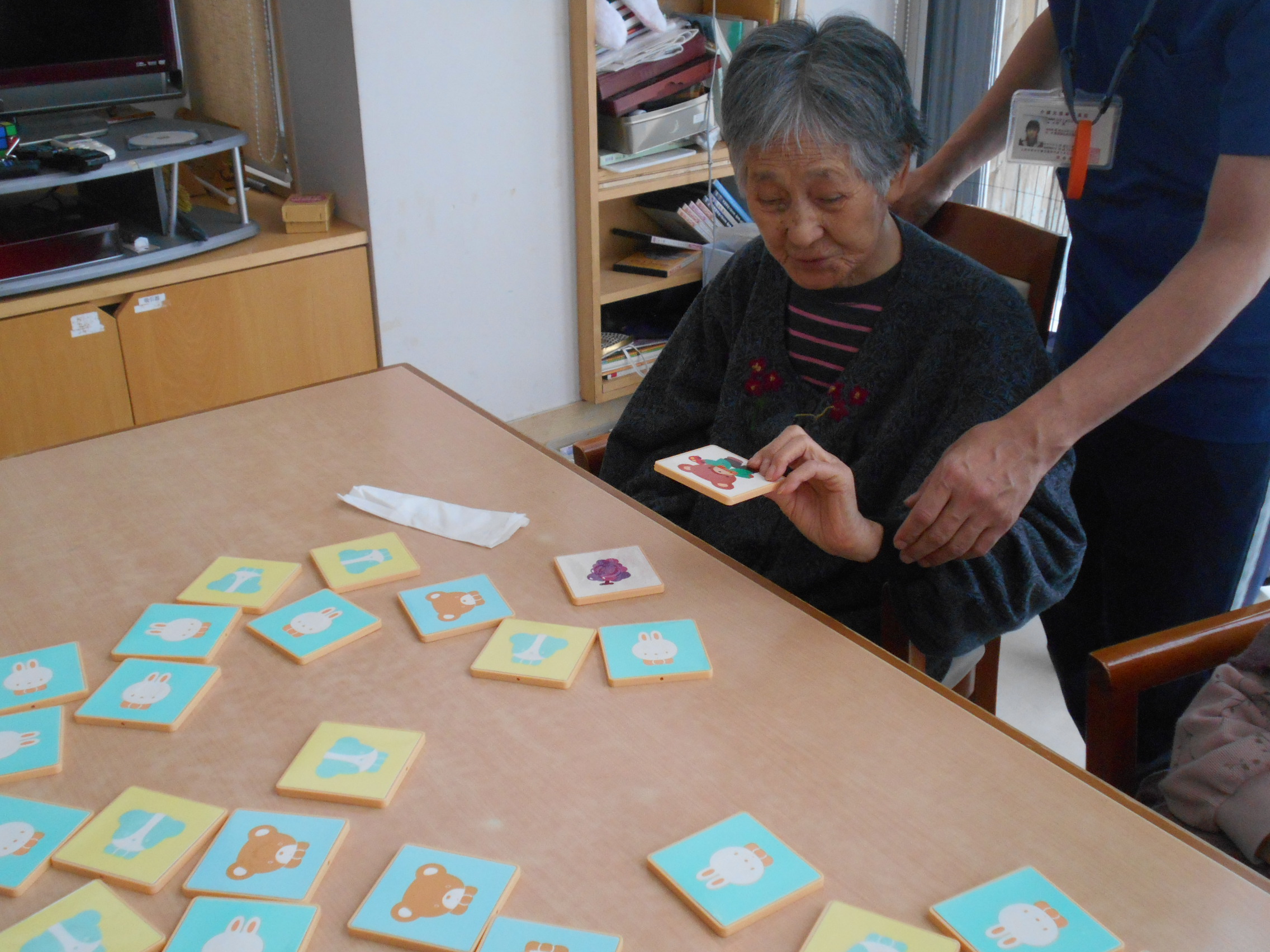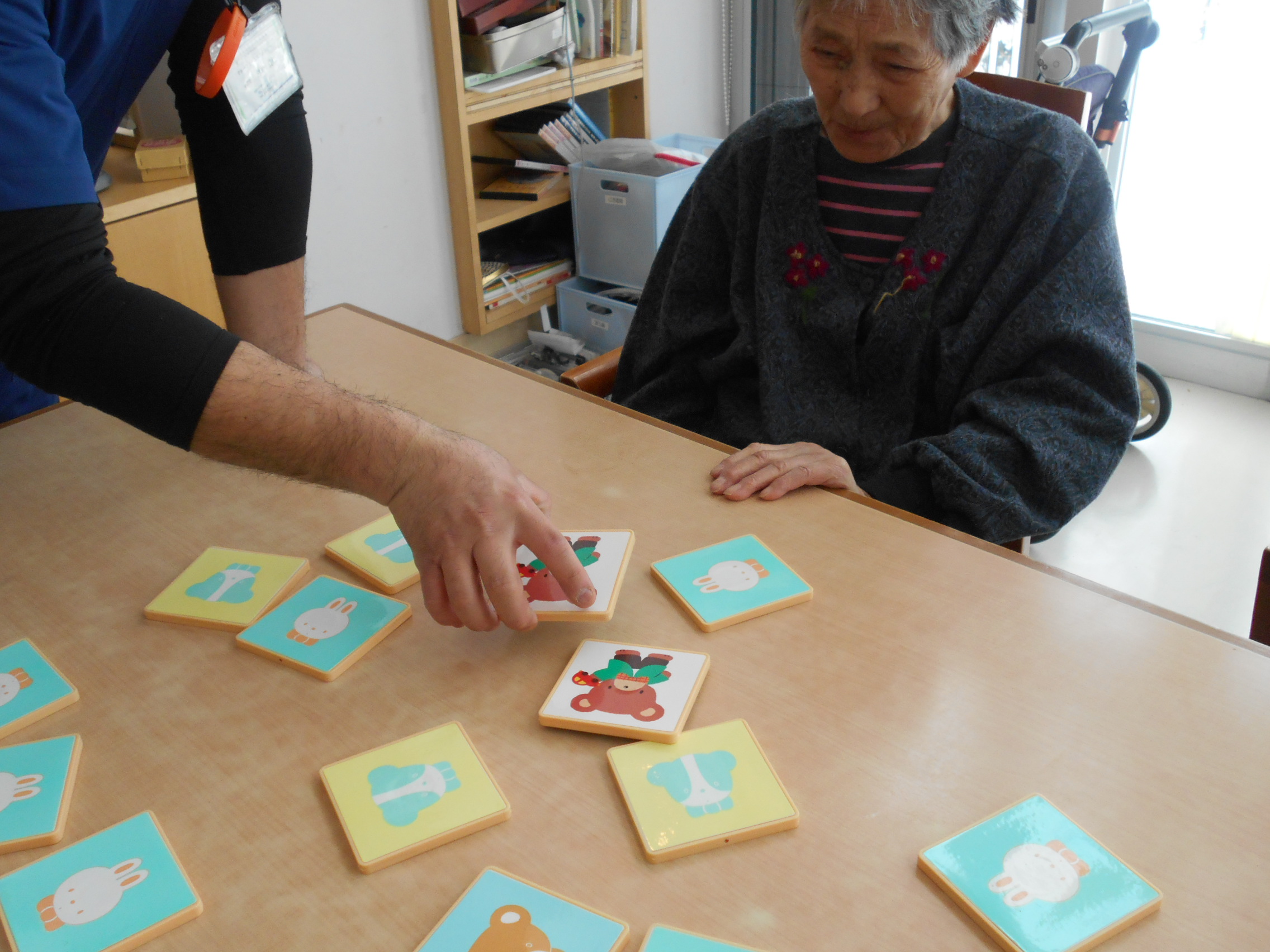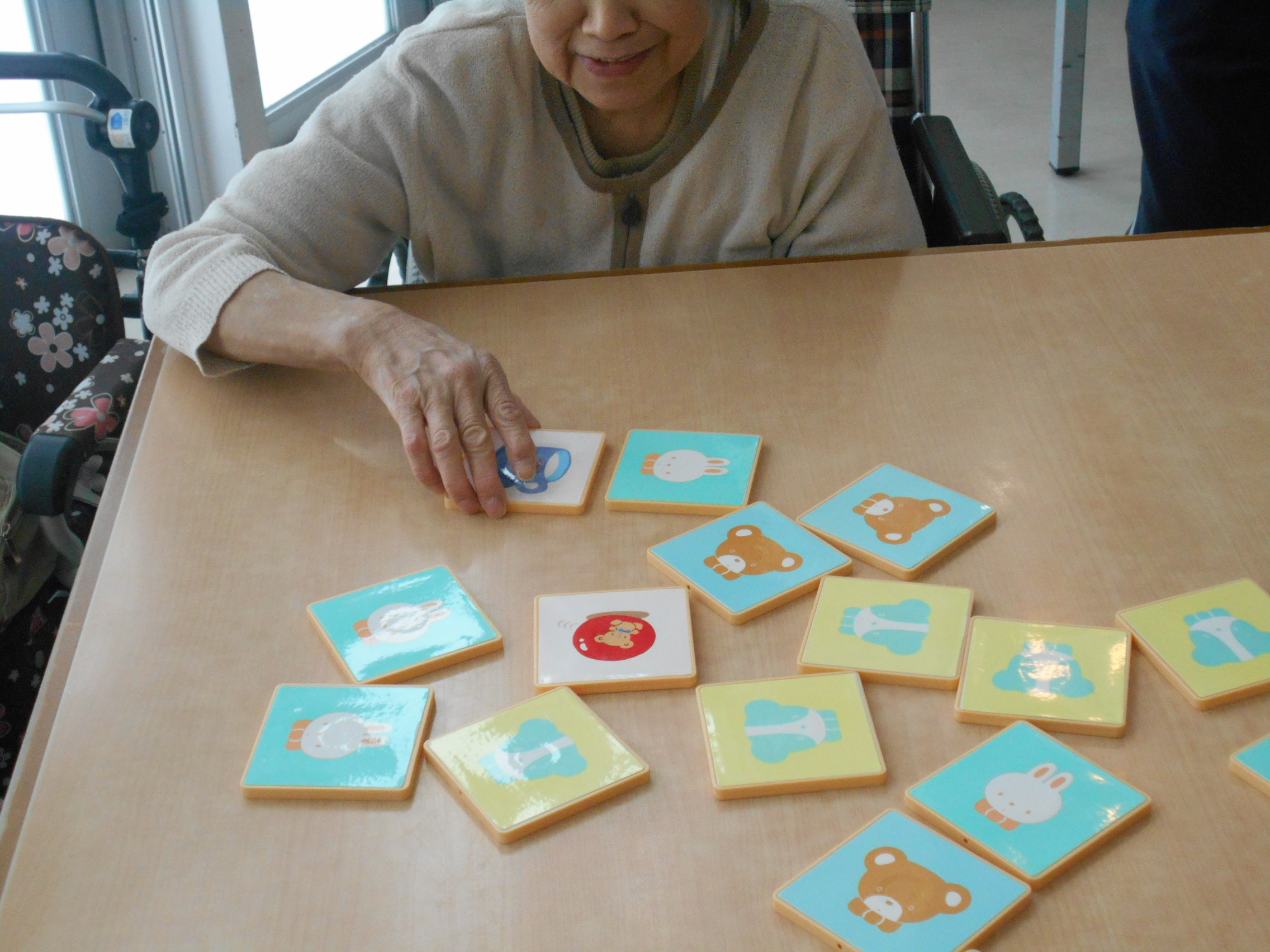 今日のベルフラワーでは、記憶力の向上の為に神経衰弱を行いました。