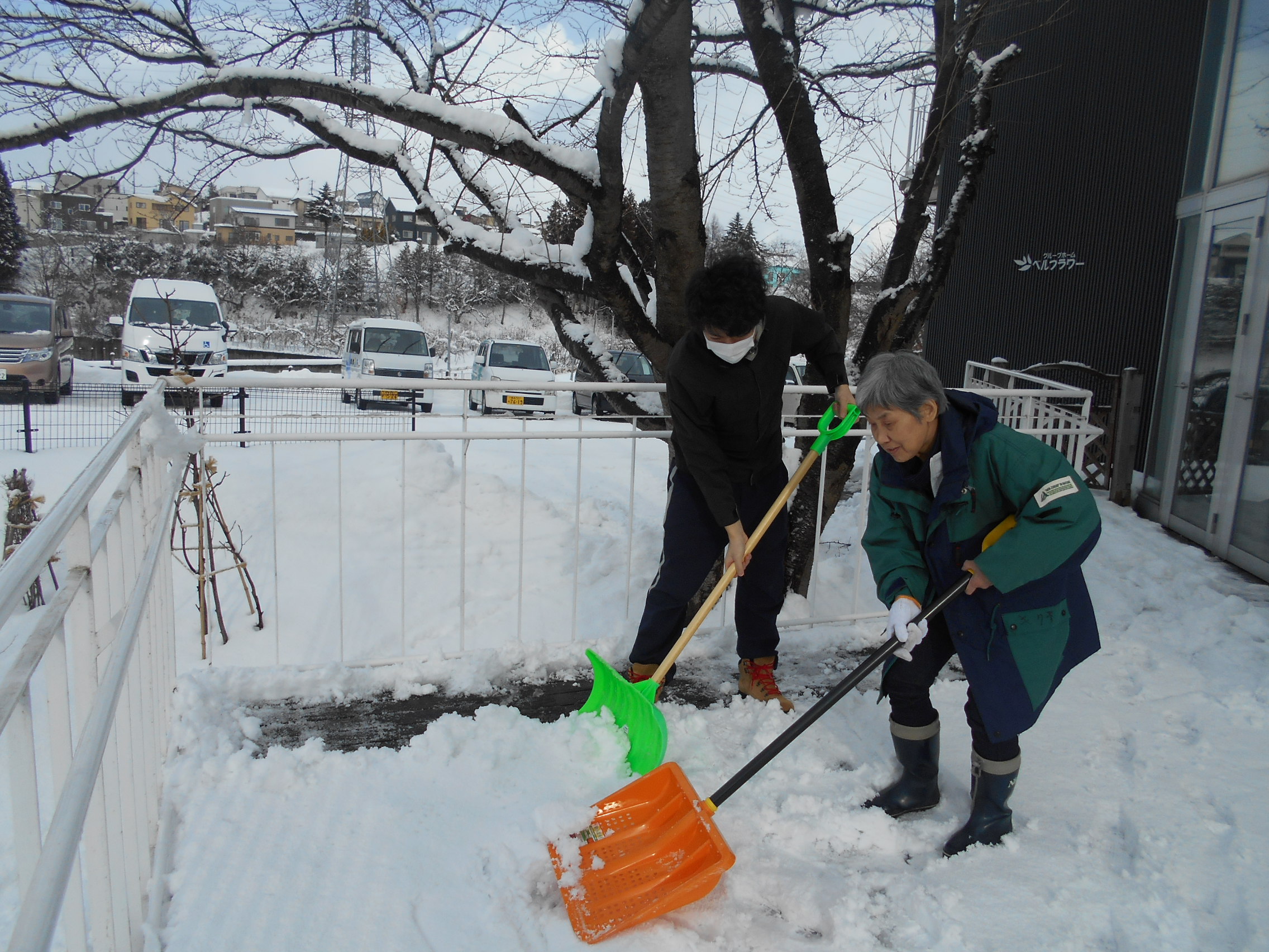 N介護員が雪掻きをしているのをホールの窓から見ていたK様が、本日は手伝ってくださいました!!!