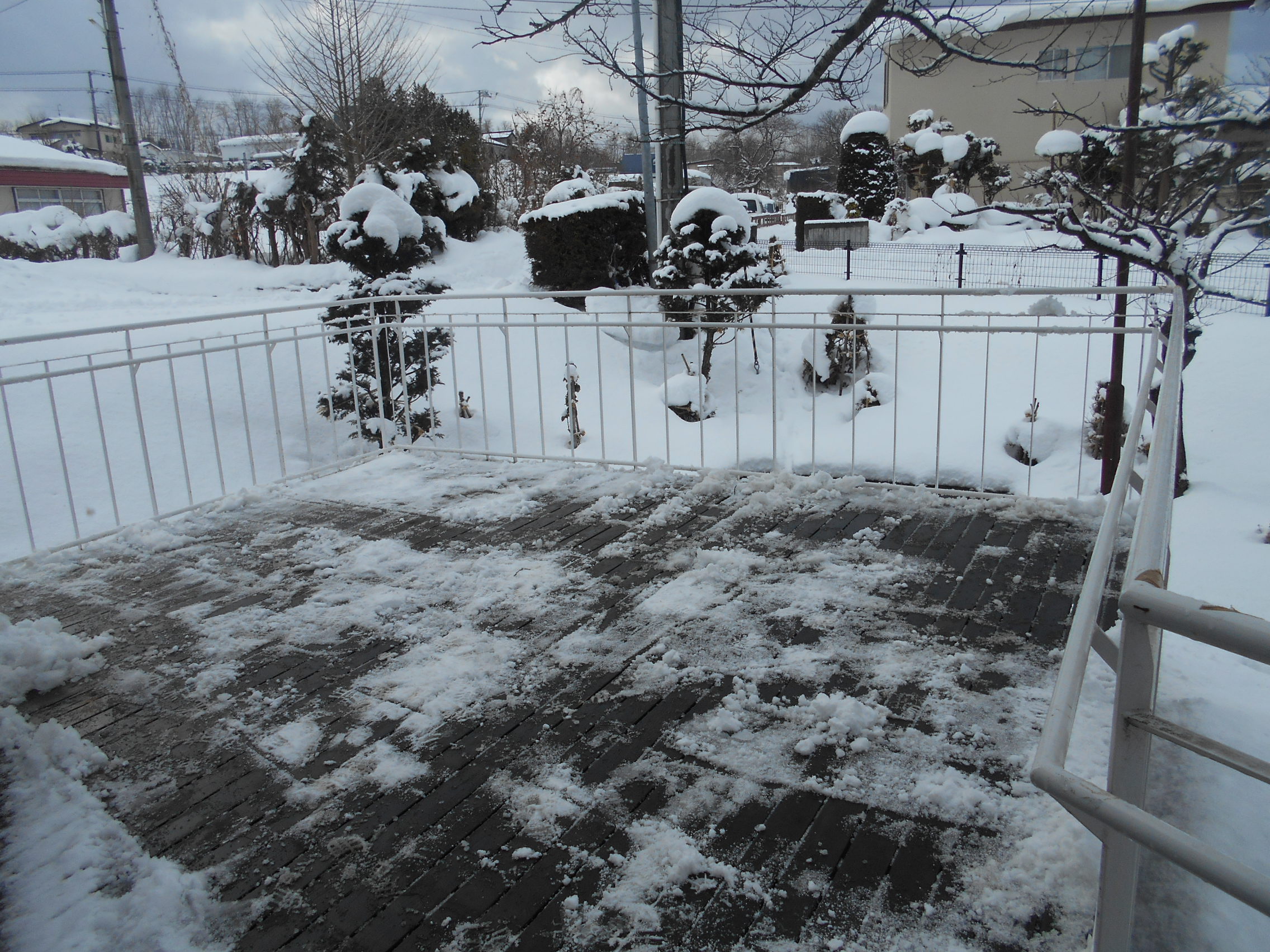 今日は晴れ間がありましたので、テラスの雪掻きを。