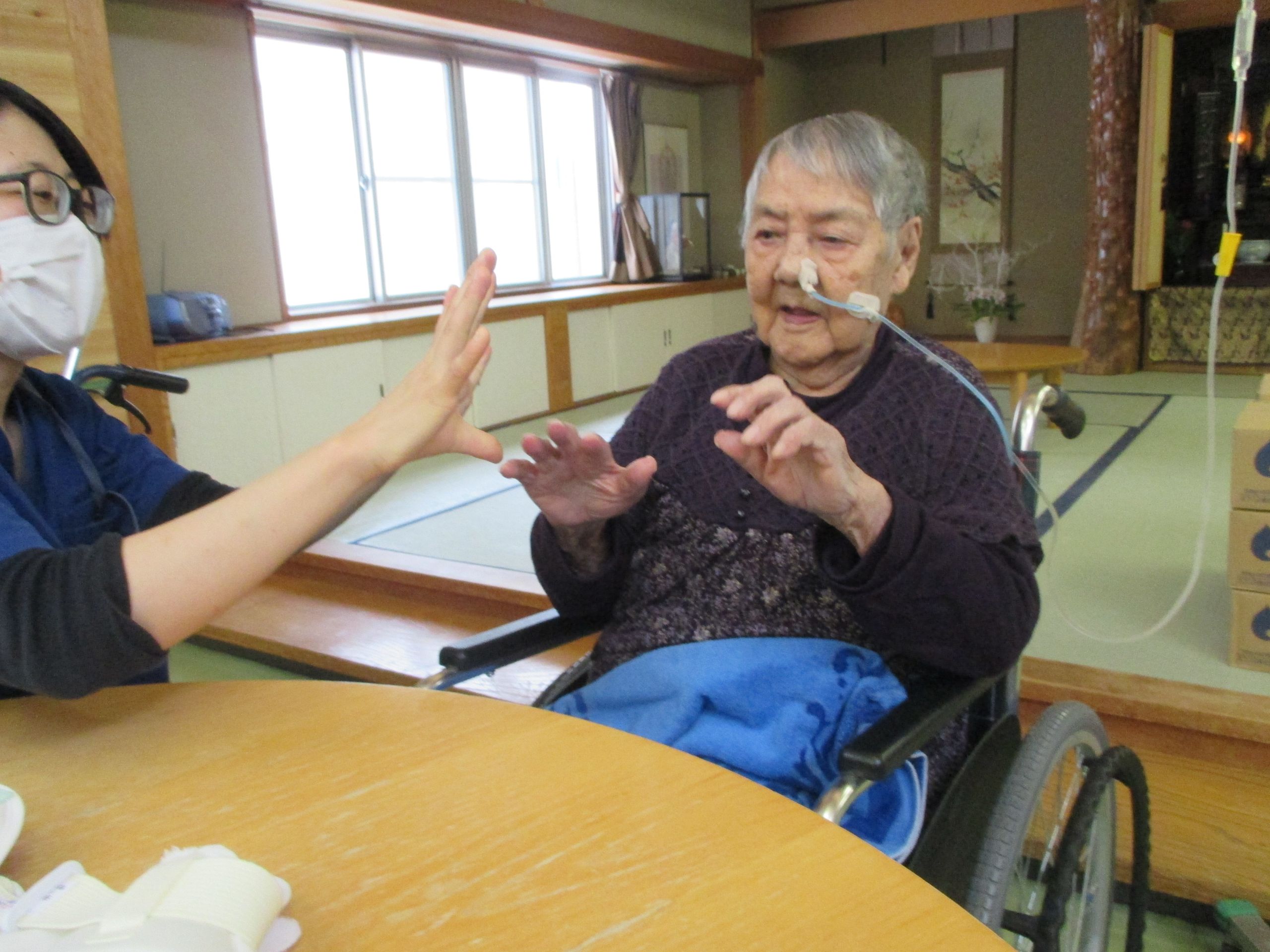 N様は私と一緒に「グー・パー」と掛け声をしながら楽しくやって頂いております。