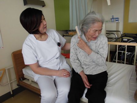 まずは日常動作からめた上肢運動を行い、