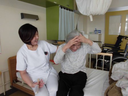 今日は特養のA様と座位保持しながらの上肢運動をおこないました。