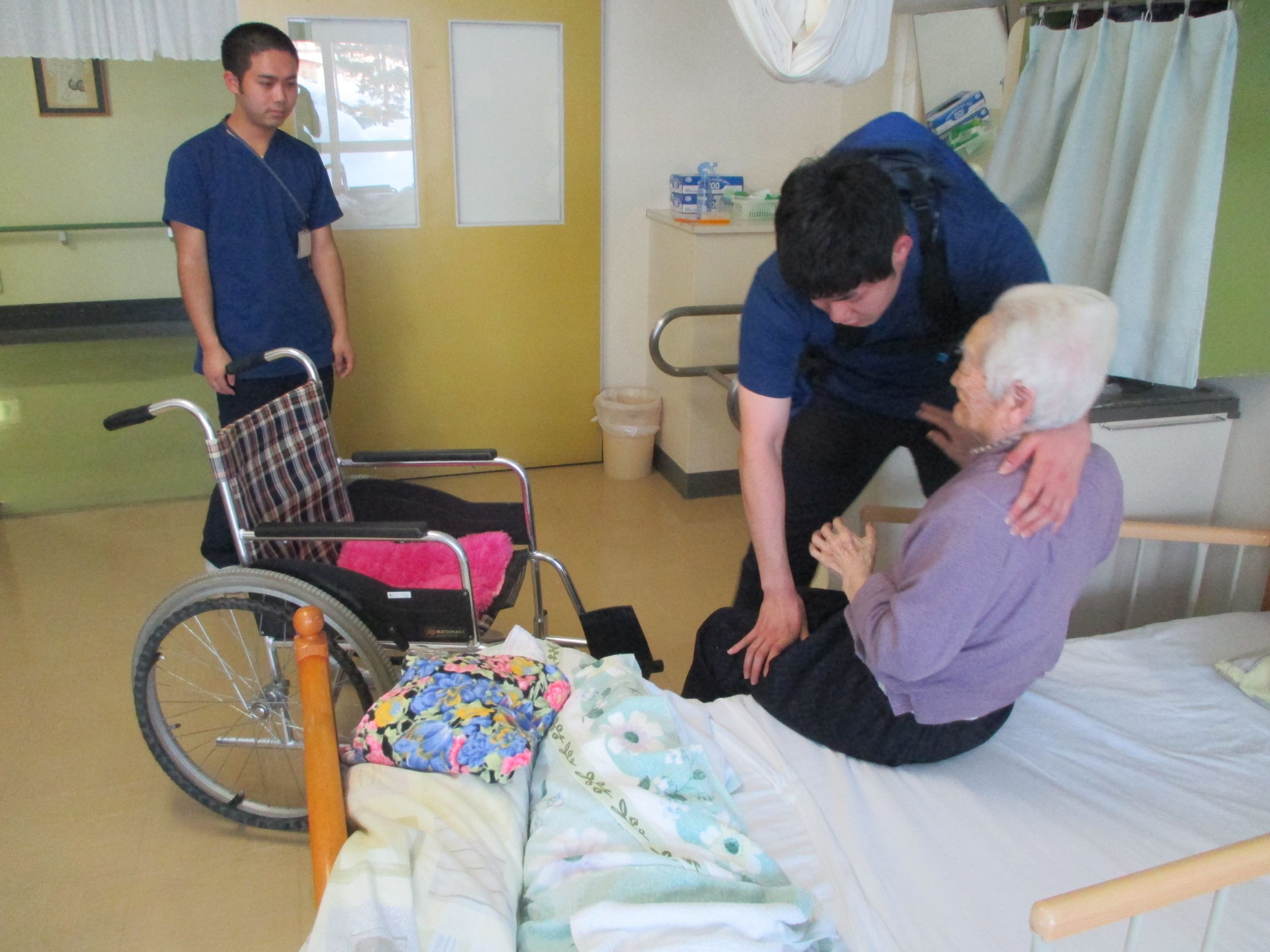 勿論、お客様にもその効果は適用され、腰への負担がほぼなくお客様を安心・安全に移乗する事が出来ます。使用してみた職員よりも全く腰に負担がなくて夢のようだとのコメントも。今後も試験運用し新規事業へ向けてフィードバックして参ります。