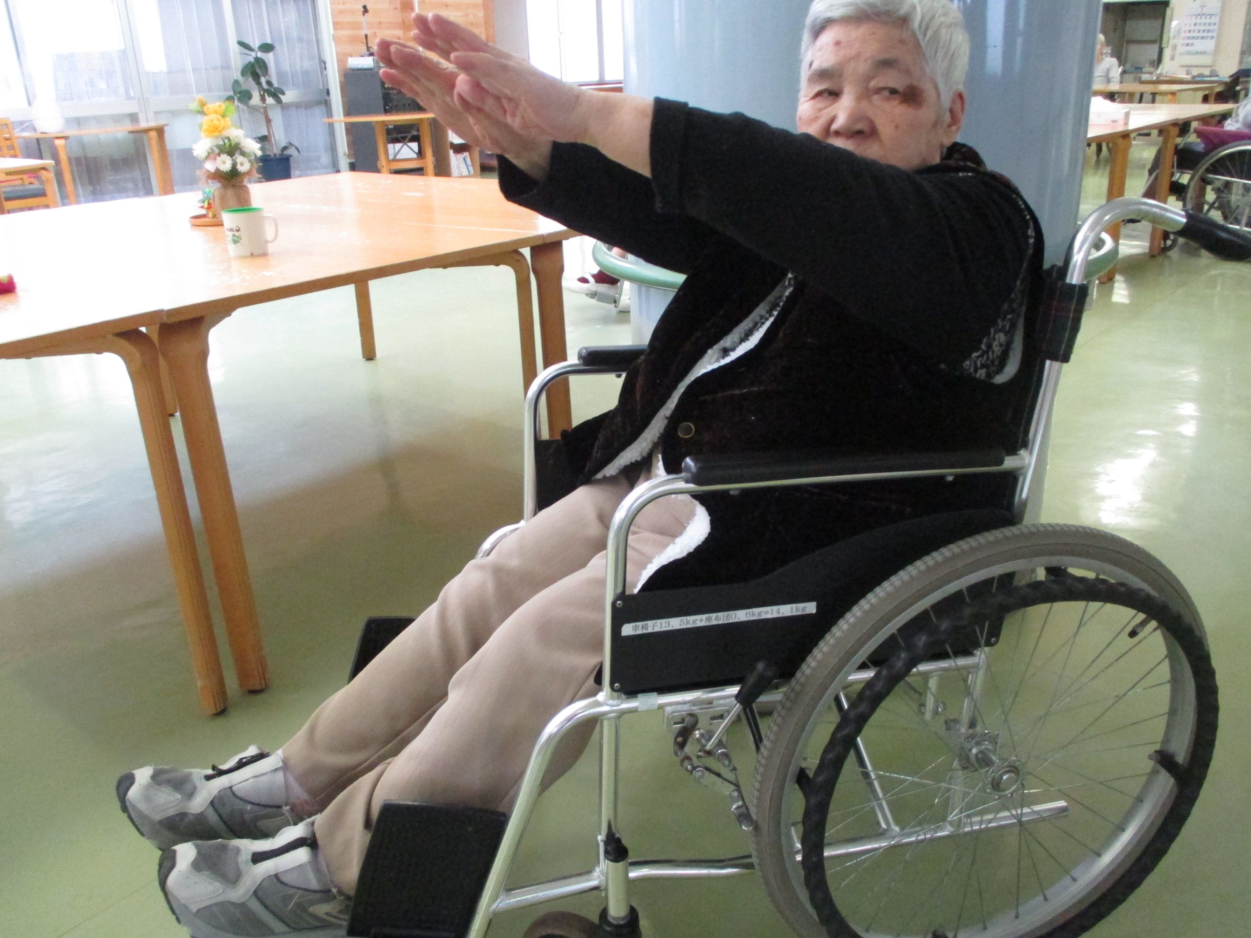 ブログを閲覧の皆様こんにちは!本日も雪が降り、寒い毎日が続いております。インフルエンザも弘前市で流行し始めました。しかし、おうよう園のお客様は元気いっぱい!本日は余暇活動の時間に体操をしてみました。