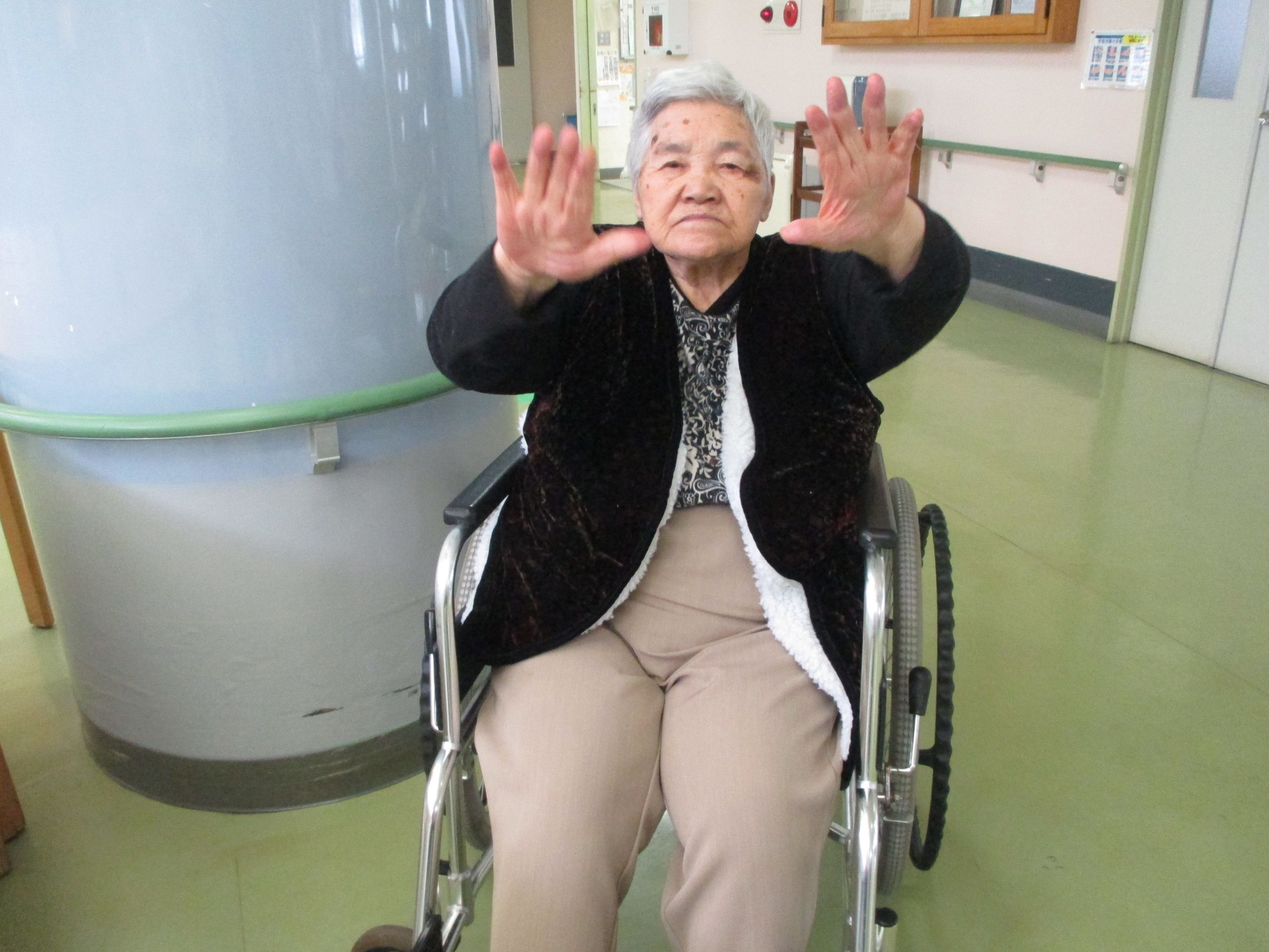 なにやら脳を活性化させる体操のようで、T様は元気に体操をしてくれました。