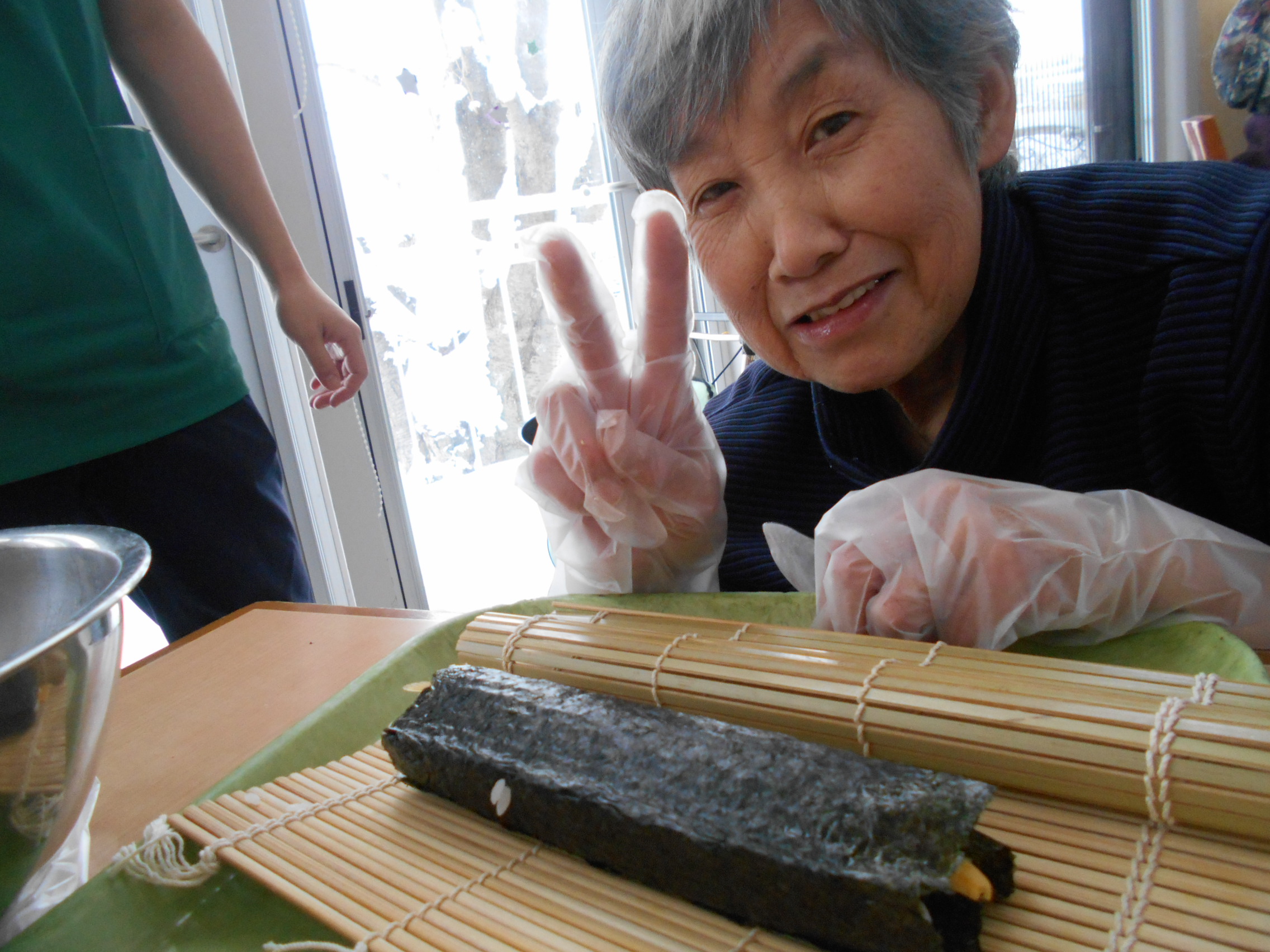 本日は節分という事で、すっかり全国的な行事になった恵方巻作りをしました。